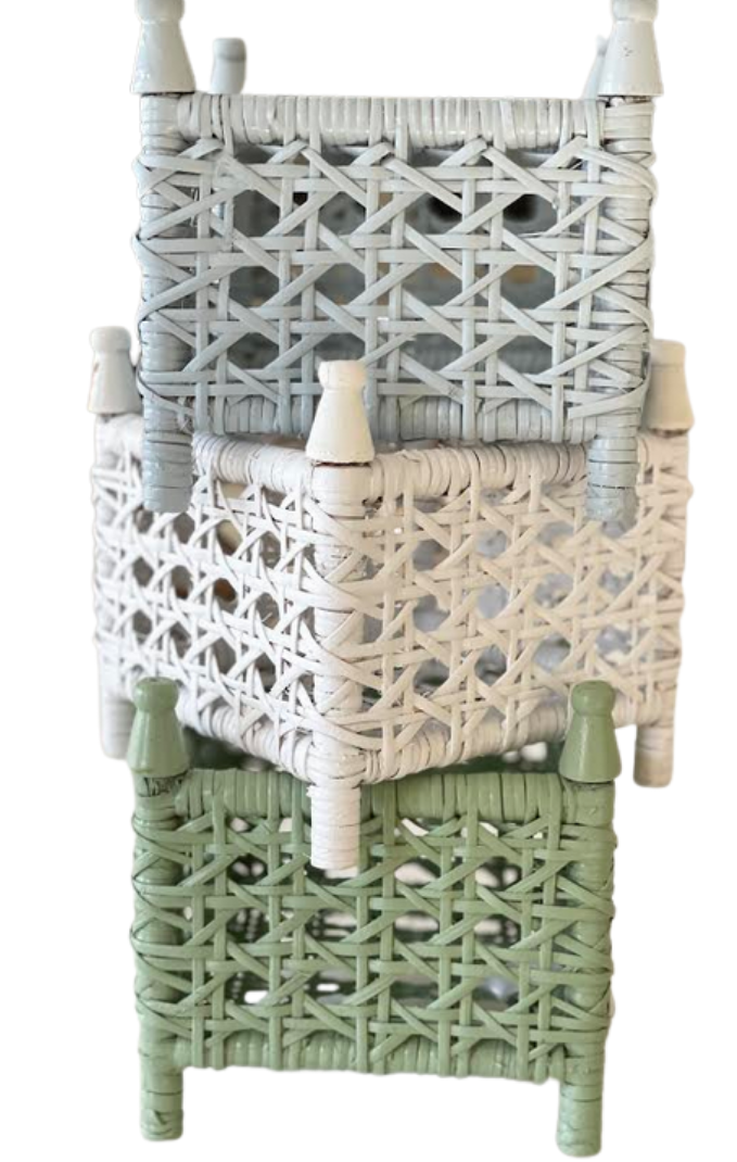 ITEM 4 Introducing our newest wicker planters, these are our new cane wicker box planters, offered in 3 colors and 2 sizes. Absolutely in love with these, we will be adding matching wicker ginger jars in about 5-6 weeks. How beautiful are these colors! Like a breath of fresh spring air, sure to become a favorite planter.