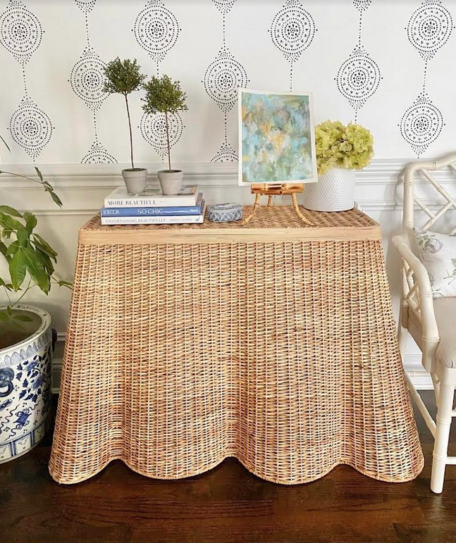 ITEM 2 Our super popular scalloped wicker consoles are back and don’t last long. These have become one of our best selling items, and with good reason.  A great size for just about anywhere, so chic and stylish. Just adore these and thrilled they are back!