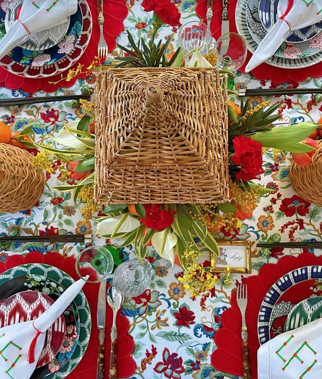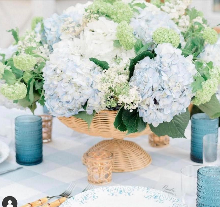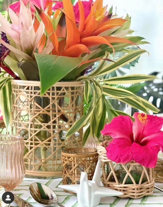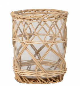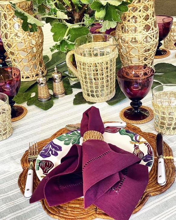The woven wicker hurricane is perfect for flowers on a table with the small wicker glasses. I can just see the setting for a brunch!