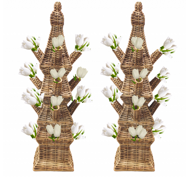 ITEM 12. Our incredible wicker tulipieres are here in limited quantities in the large size (26.5-27″ tall). These are lined with an aluminize interior to allow water to be used in each of the four parts which rest on top of one another. Really amazing.