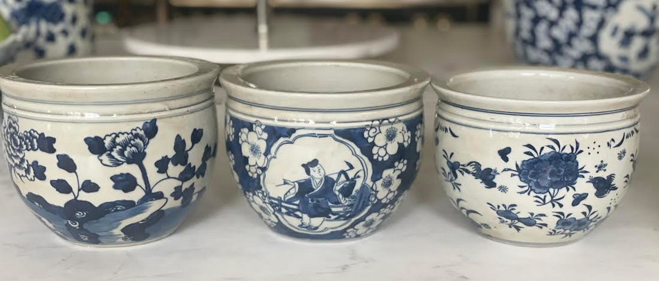 ITEM 27 Getting in more of this incredible pierced footed blue and white bowls. Beautiful as a display piece all on it’s own, but makes a lovey fruit/candy bowl as well.