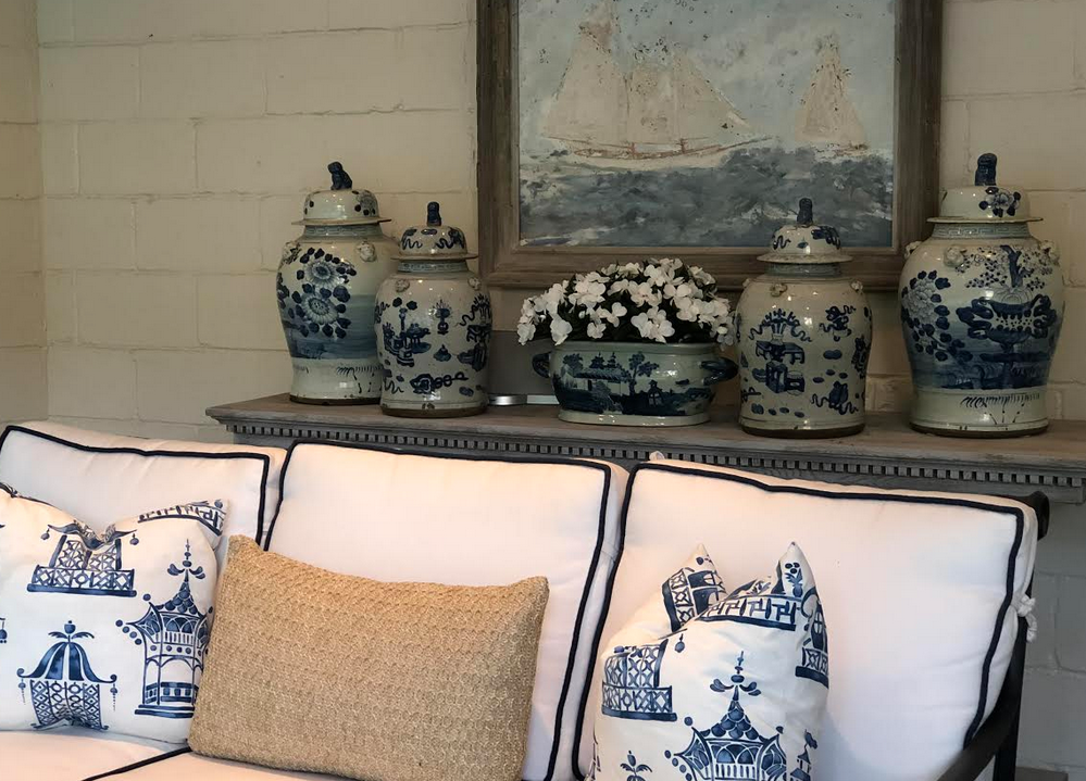 ITEM 7 This beautiful square scalloped ginger jar is one we introduced about 4 months ago and it has become a quick best seller. It is so pretty,  a great size to fit into an existing vignette or start a new one.  Also due to the size a perfect jar for mantles, I have two on mantle and they are the perfect “mantle jar”.