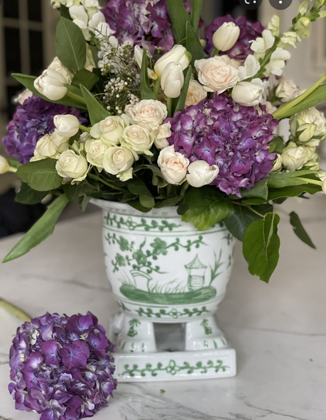 ITEM 5  One of my all time favorite footed planters is coming back in two stunning colors….the pale pink and the pale green. These are so beautiful filled with flowers, topiaries, boxwood balls, just such a pretty piece.