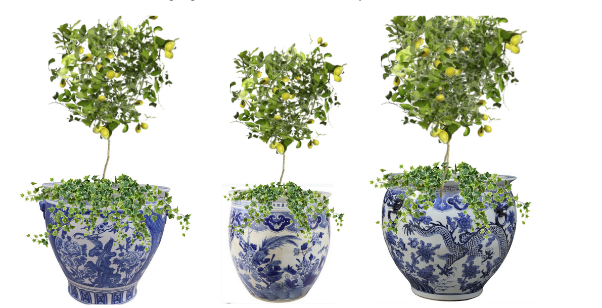 ITEM 16 For anyone who has been waiting for us to restock our largest fishbowls, here it is! Our best selling dragon  and floral jumbo fishbowl. This is a thing of beauty…..just stunning indoors or out. Ideal for a large tree or palm, boxwood ball or topiary. If you know the prices of these,  you will recognize the incredible deal on these gorgeous jumbo fishbowls.