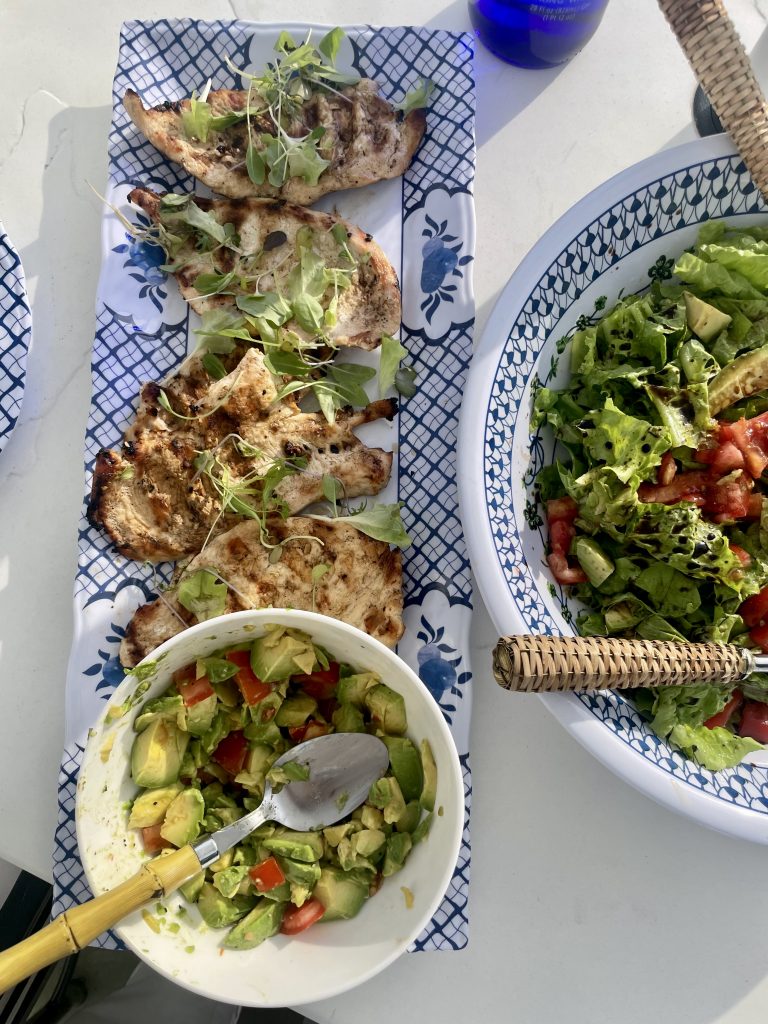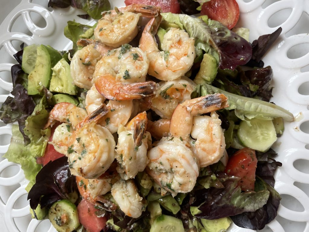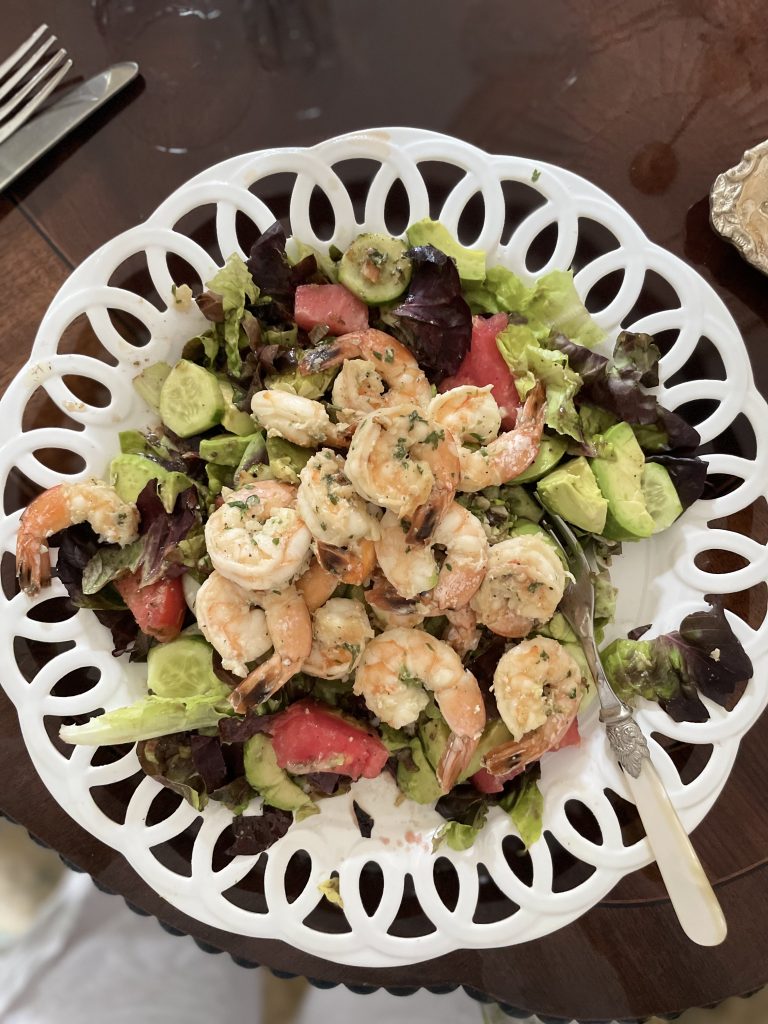 My absolute favorite shrimp scampi with mixed greens and avocado (will share recipe this soon)