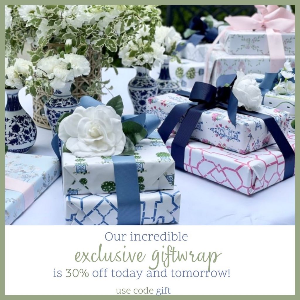 Our entire collection of every day and holiday gift wrap is 30%!! Ends tomorrow and includes gift bags and tissue too. Not too soon to start thinking about the holidays!