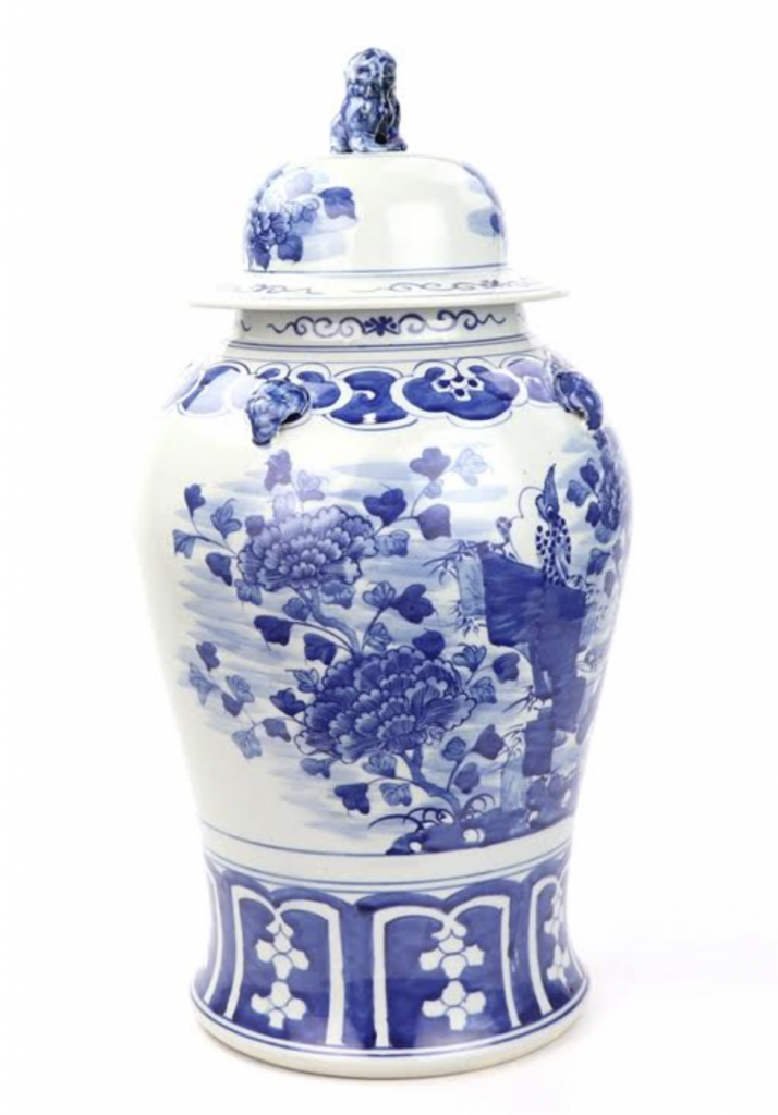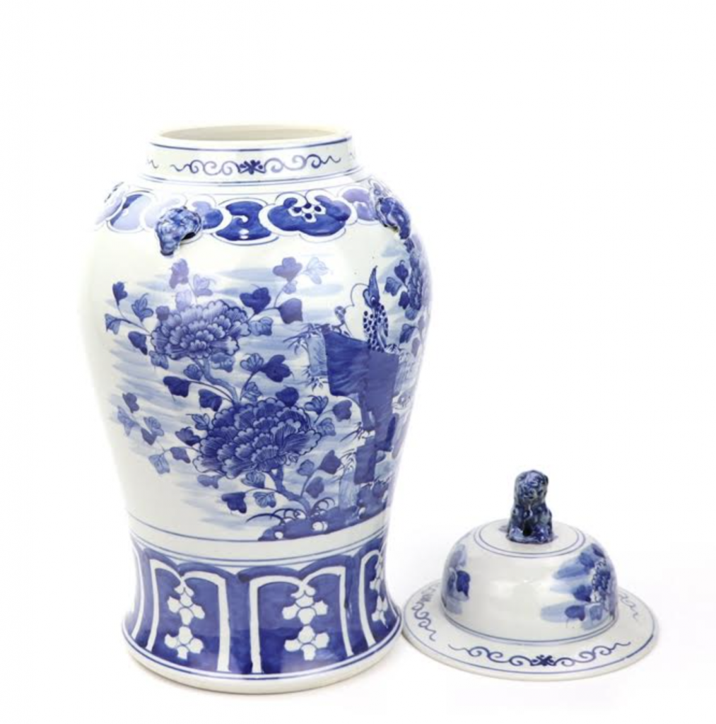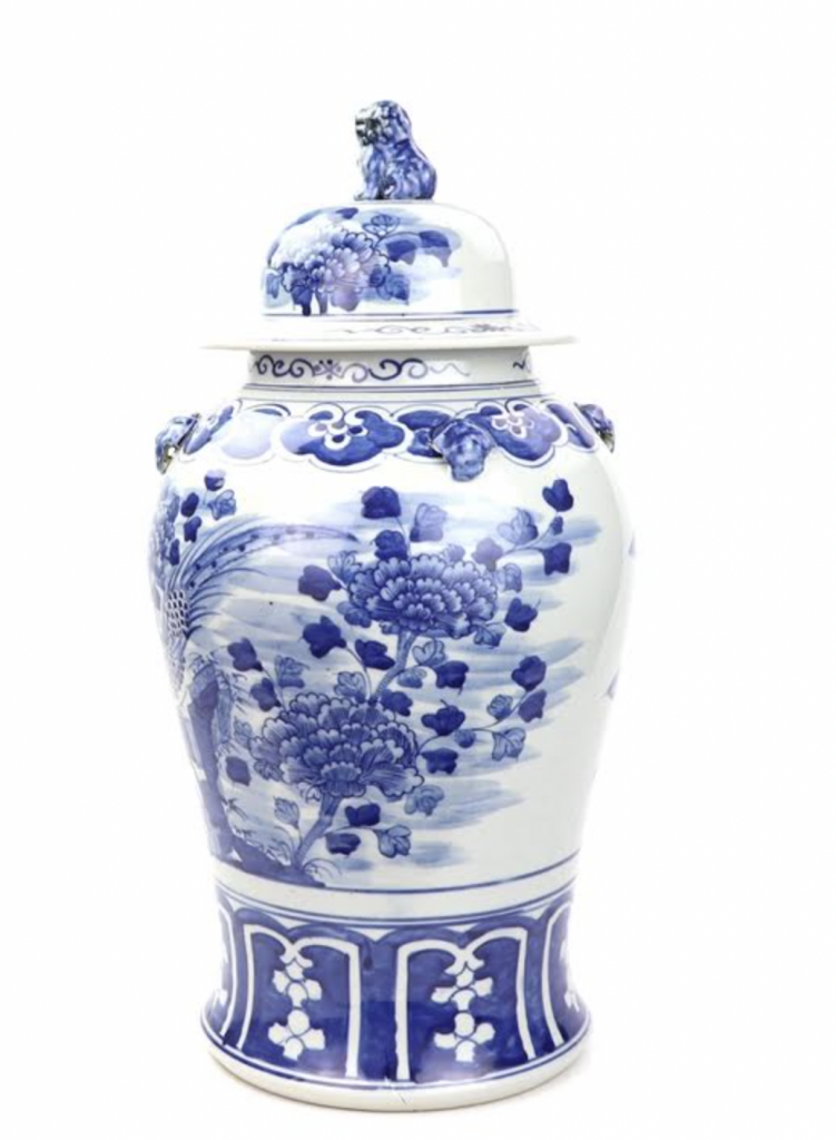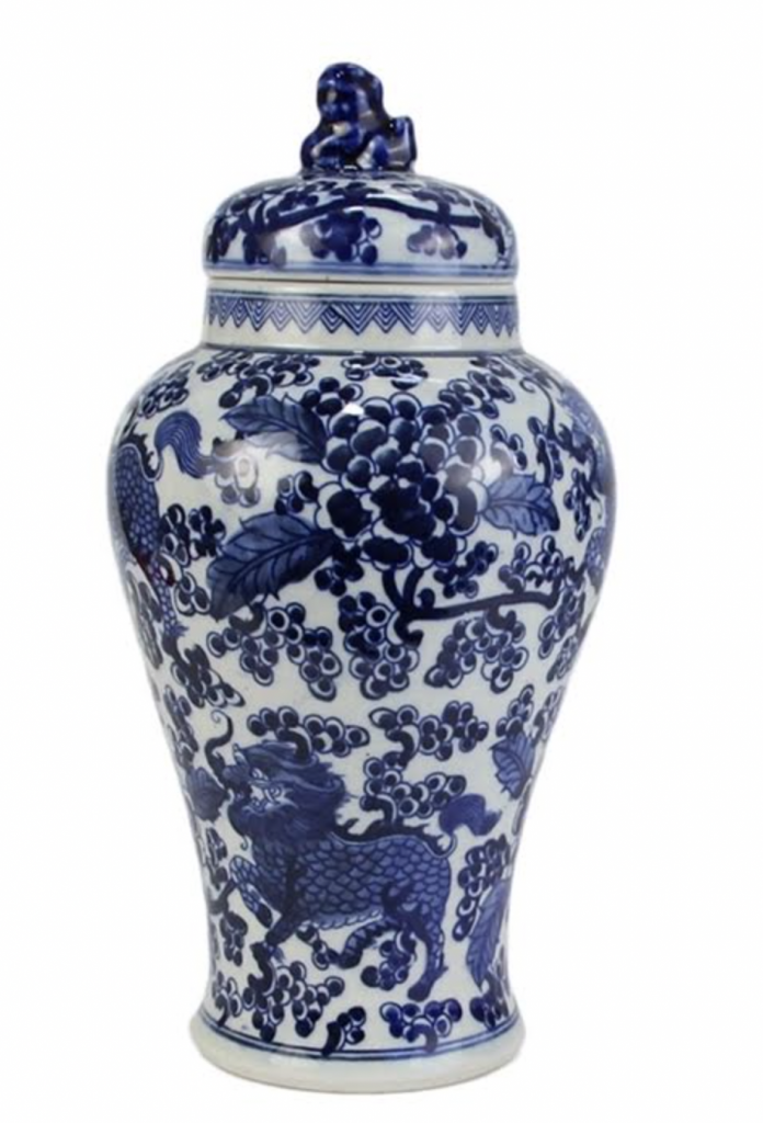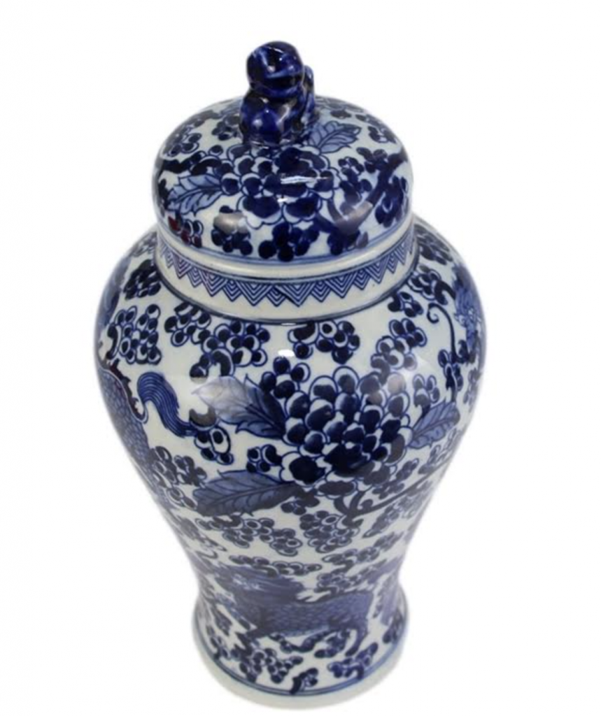 Love the blue Foo Dogs and the lotus jar! Would use it on a bookshelf in my living room that I need to style!