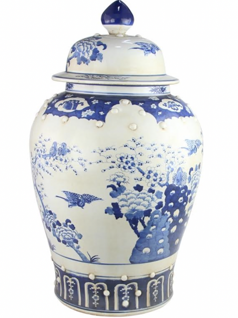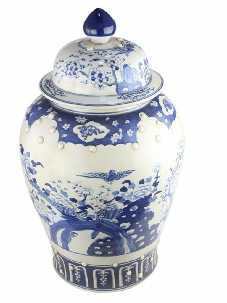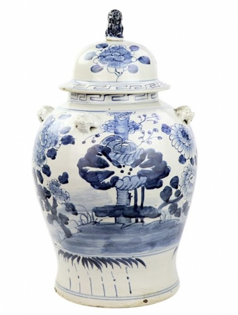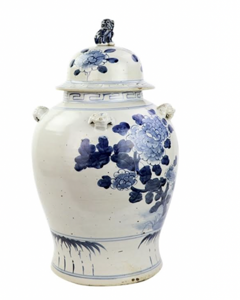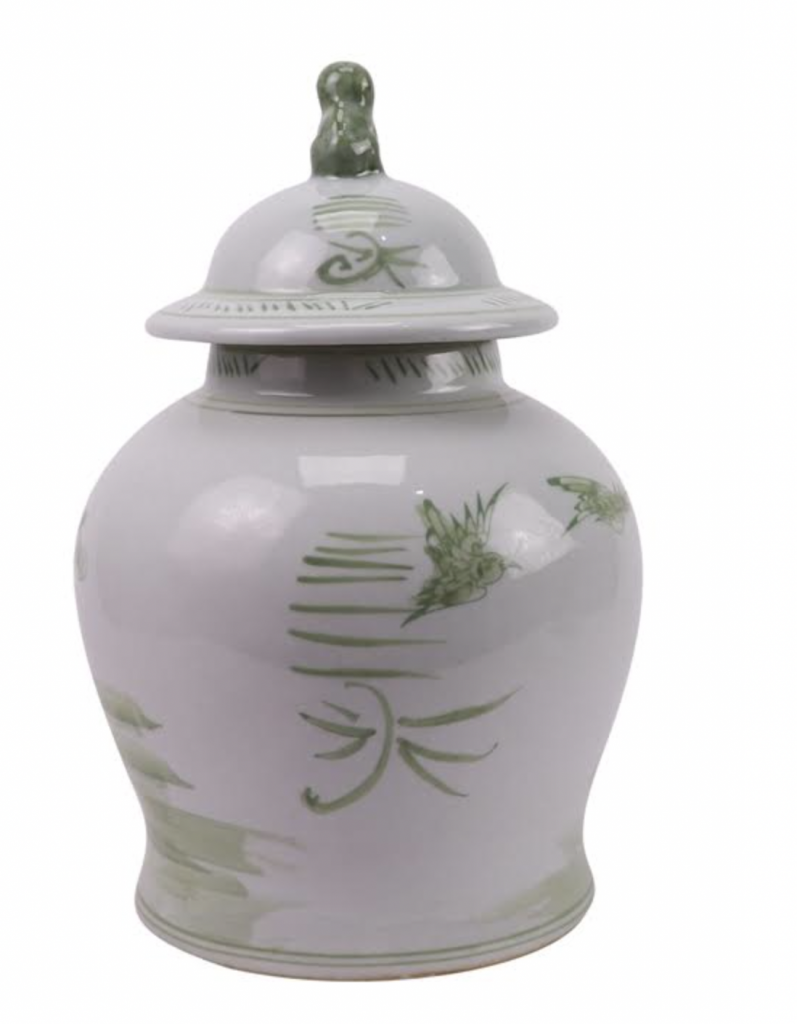 ITEM 1  NEW! Say hello to this fabulous green and white jar. You spoke and we listened and we are adding more green and white porcelain pieces (and wait till you see our spring/Easter collection). This gorgeous floral vine jar is the prefect size and features a darling foo dog lid. Perfect as a pair and imagine with white cherry blossoms!