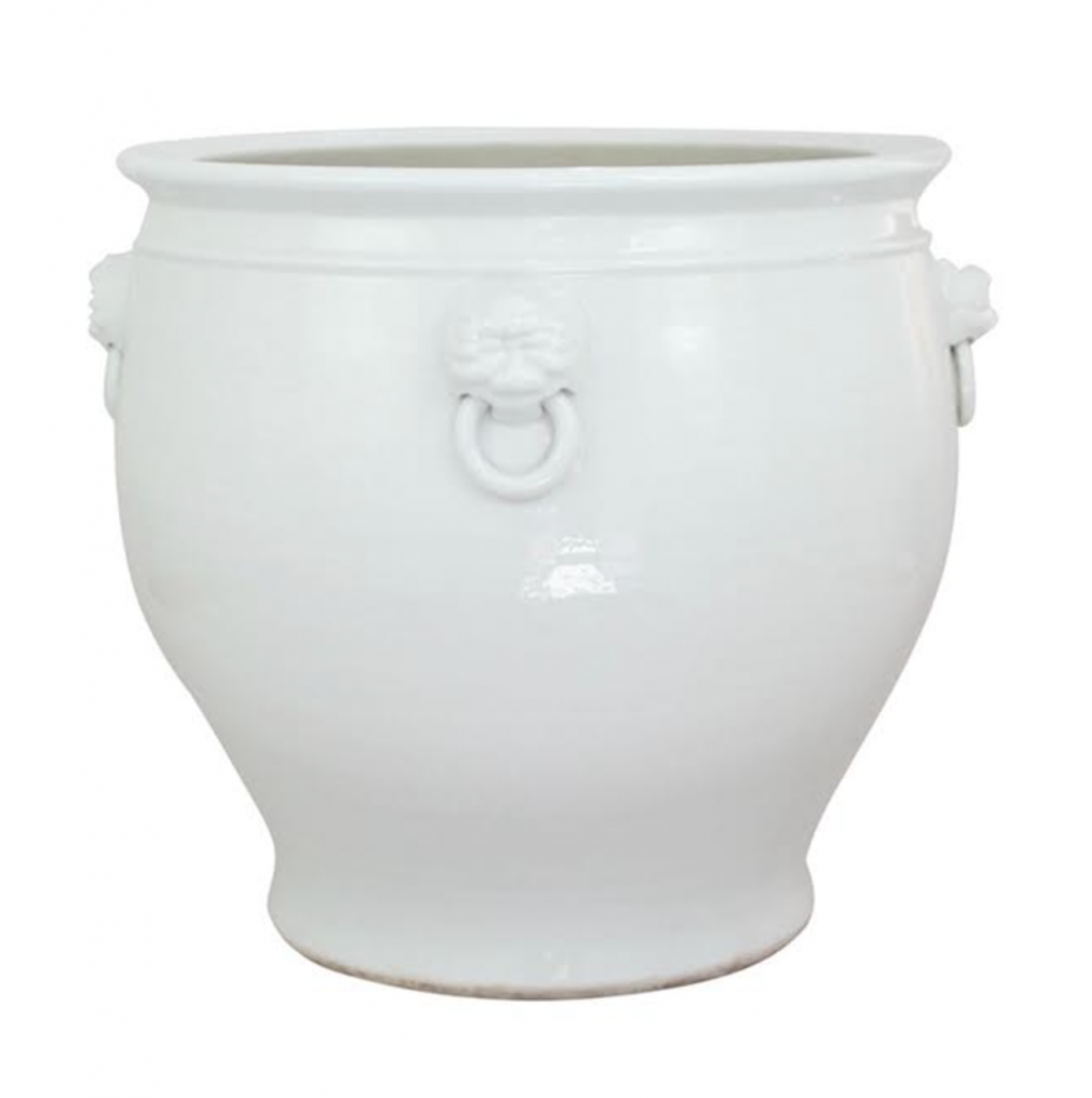 ITEM 5 For those who have been waiting for our popular white fishbowl with lion rings to come back, here is your chance! Perfect for indoor or outdoor use.