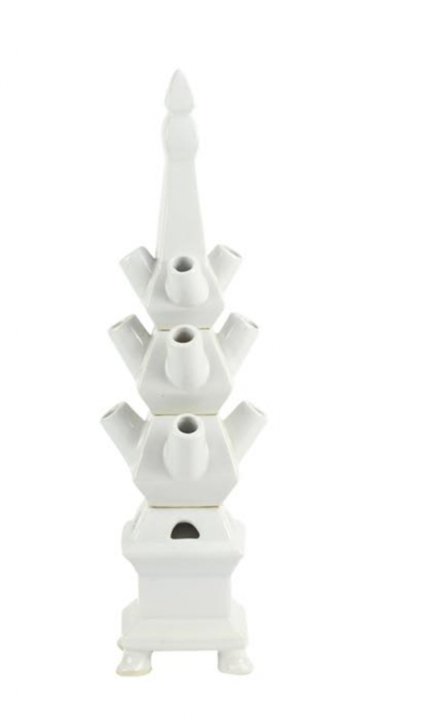 ITEM 15  Our solid white tulipieres are coming back in stock in both small and medium. These come in four parts for easy use and water filling.