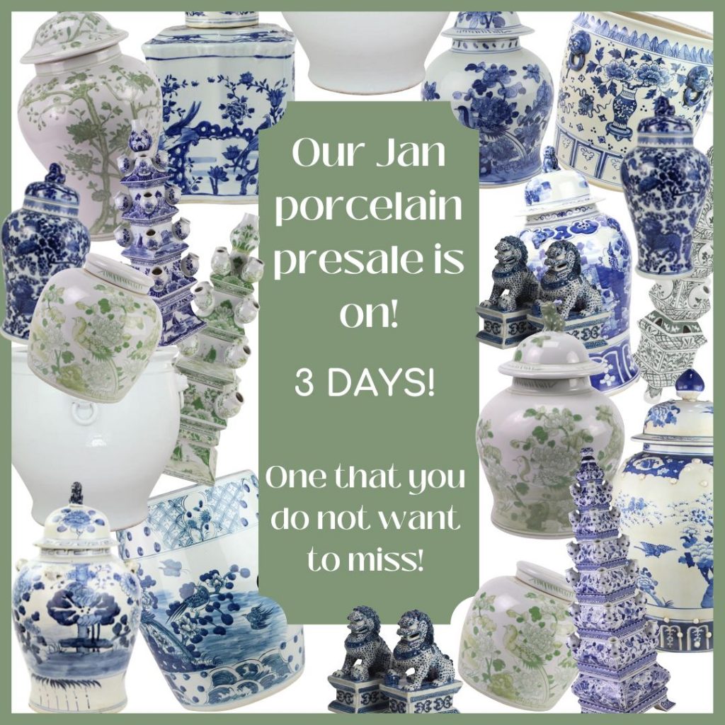Haven’t had a porcelain presale in quite some time. And what a way to kick off 2023!  Well, I think you will agree this one is more than worth the wait. So many beauties here along with sone really exciting new arrivals! This container is on the way and due. here in about 3 weeks! A perfect midwinter pick me up:)