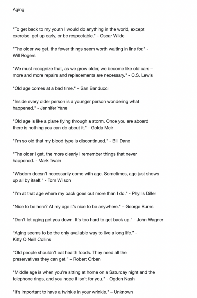 And if anyone wants a little humorous wisdom about getting a little older, this will make you smile…