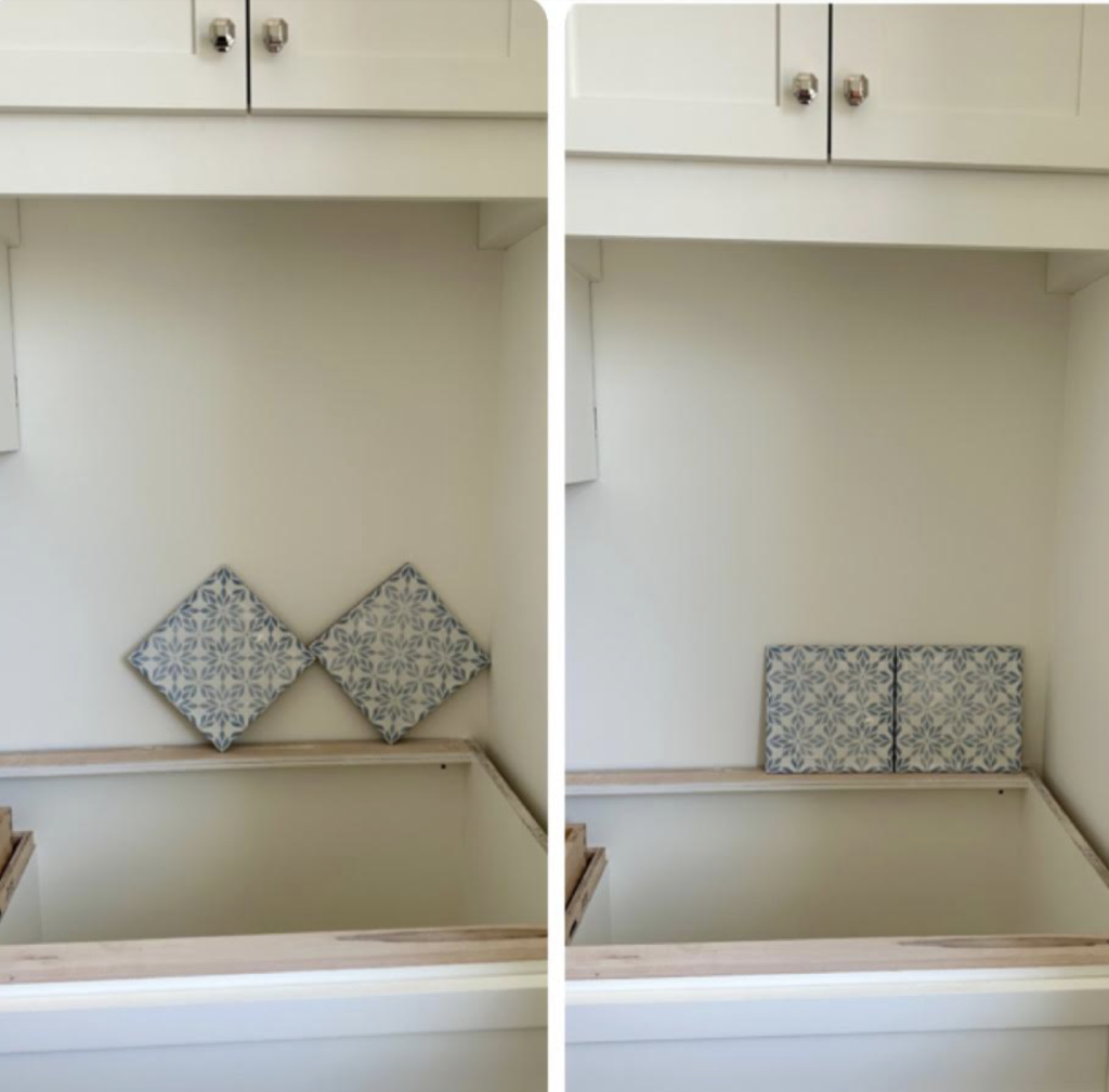 PB laundry room decisions, was overthinking the direction of the tiles, ended up going with them on a diagonal, when they did a dry lay (below) it made up my mind