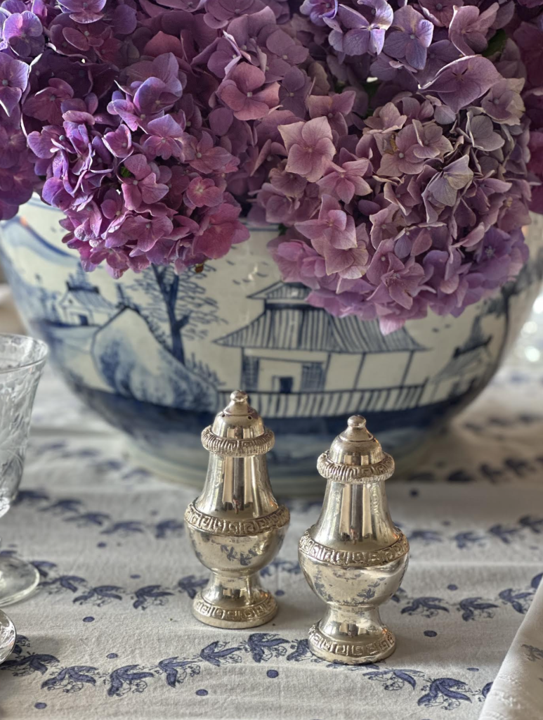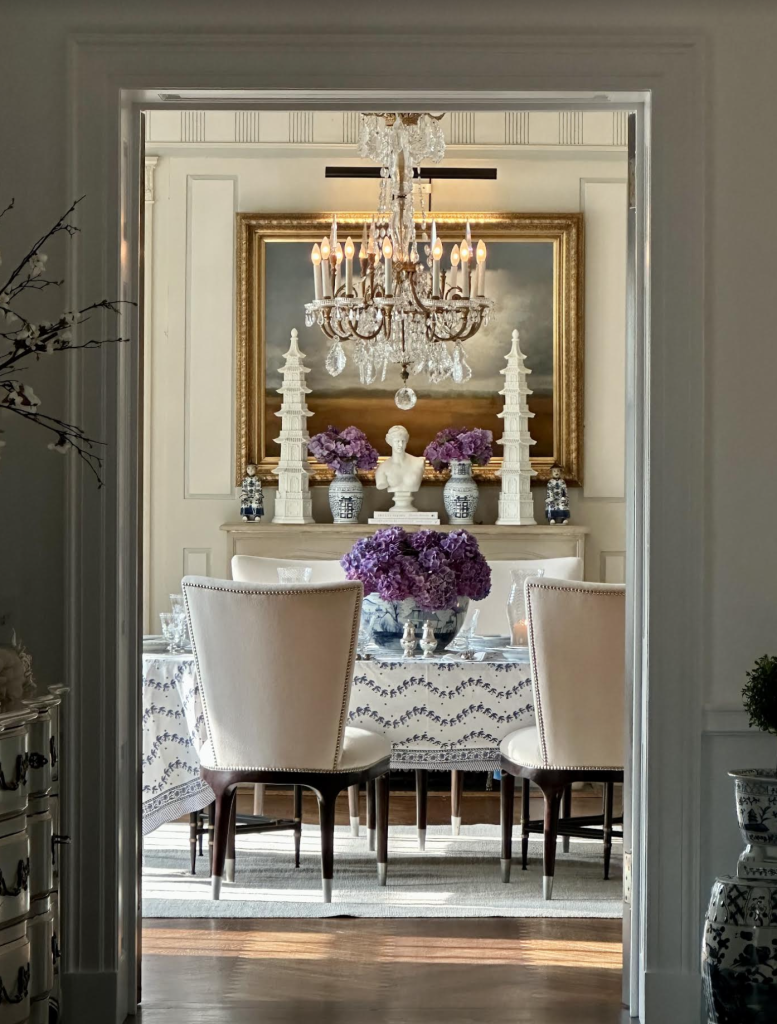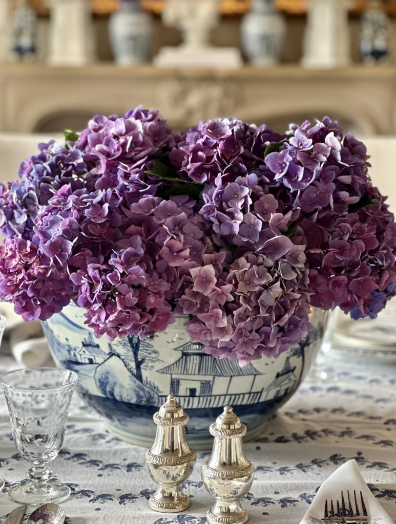 Your dining table is beautiful with all these purple hydrangeas. I agree purple is so striking in blue and white. We will be in East Hampton in Sept. (first time) for a wedding, would love to know if you have any great suggestions.