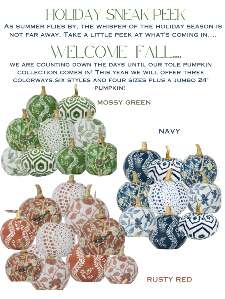 Wow, love, love all the new items. As much as I hate saying goodbye to summer, those pumpkins get me thinking about the beauty of fall!