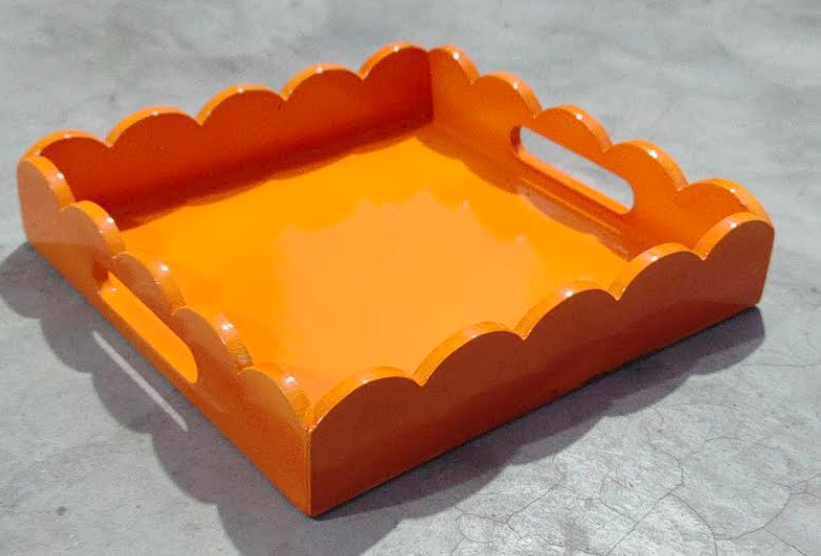 So excited to see the fabulous lacquered trays! I love the scallop detail, and the colors are delicious. How to choose between square and rectangular? I need them all.
