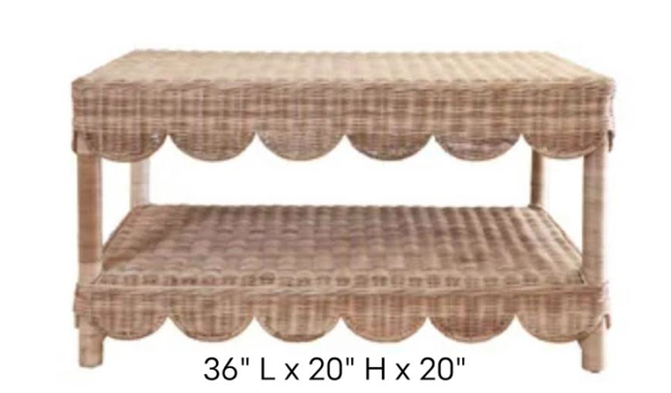 What beautiful new items. Especially love that scalloped wicker coffee table.