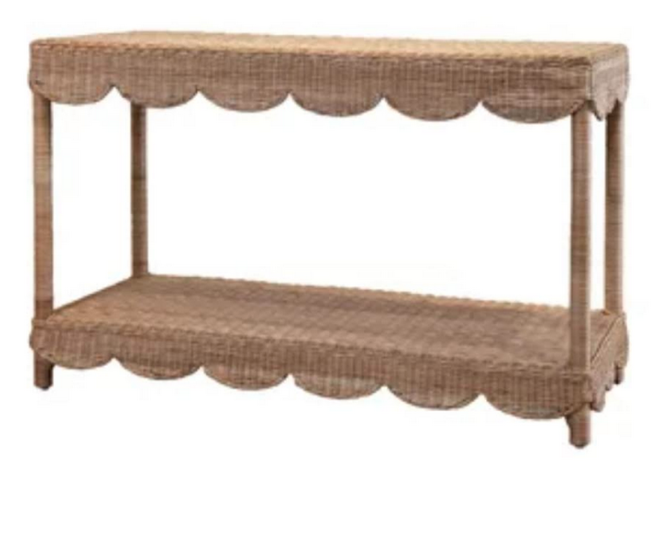 Oh my goodness! How can you pick one, when they are all so fabulous? I would have to say the scalloped wicker console! It’s spectacular!💙