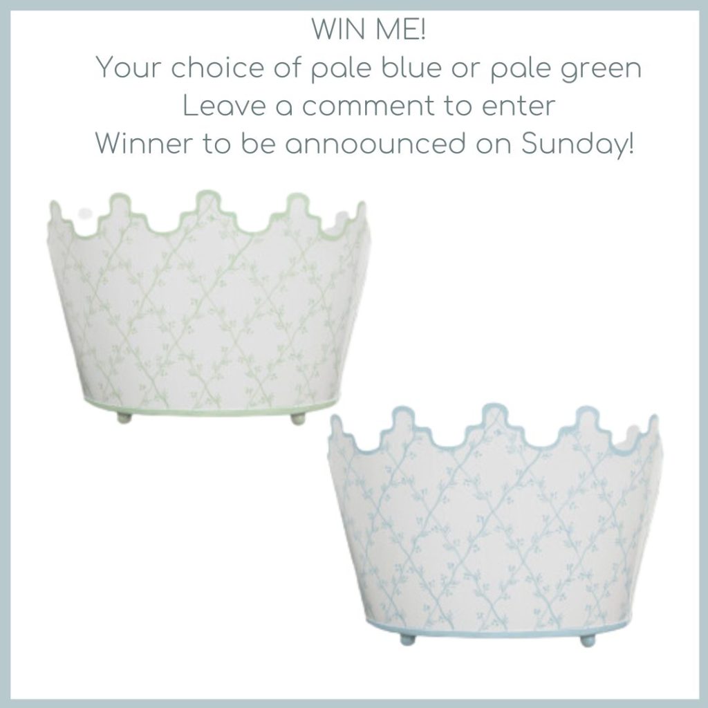 We want to thank our readers and customers for their support and business and are offering a giveaway! One lucky winner will this beautiful scalloped tole planter in their choice of soft blue or soft green. Simply leave a comment on this post telling us your favorite new item featured on this post. We will announce a winner on Sunday morning