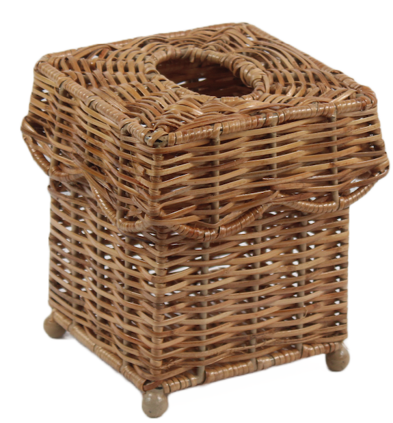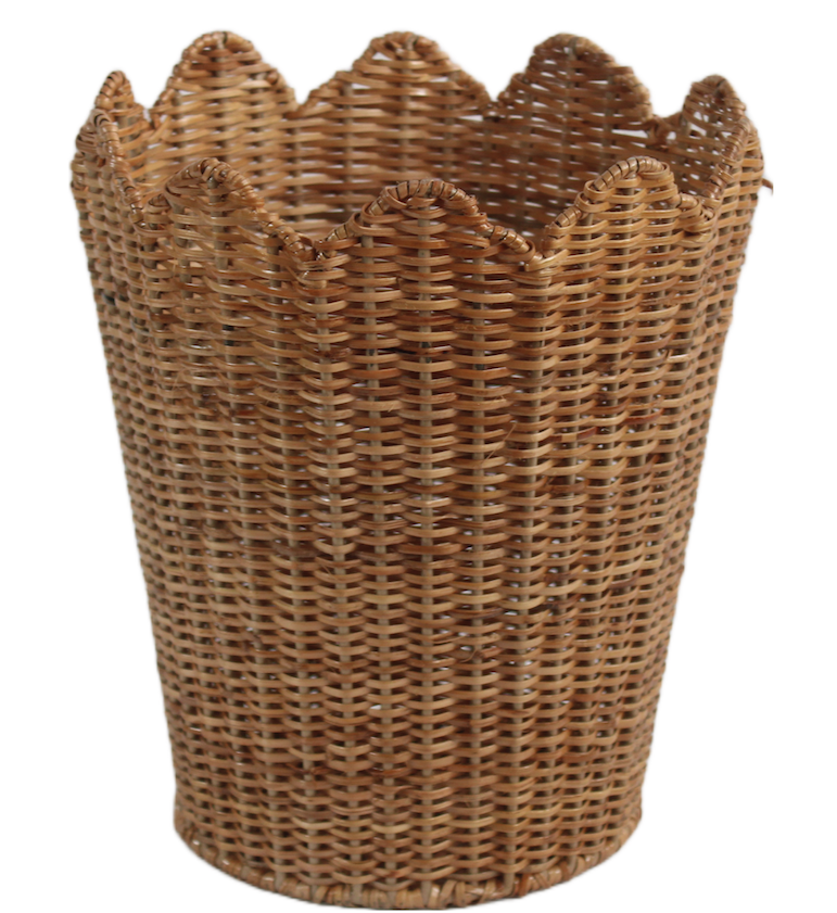 ITEM 4 And our best selling natural wicker wastepaper basket and tissues are coming back! These scalloped beauties will add to much to wherever they are used, a powder room, office, etc….