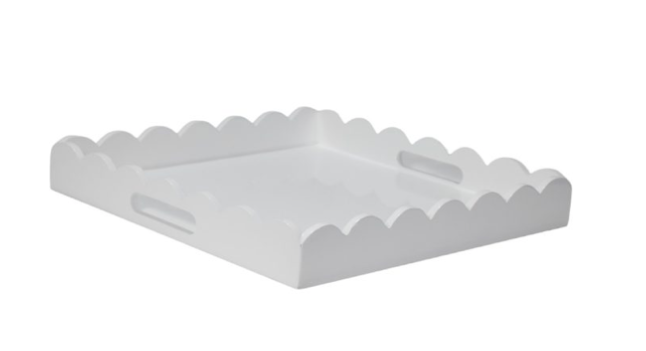 ITEM 1 Our incredible high gloss lacquer trays will be landing here in under 2 weeks! I know many of you were waiting for these to become available to purchase I am so excited over them myself and can think of so many places to use them. If you know the prices of comparable trays, you will recognize the unbelievable value here. Offered in five incredible colors, these high gloss scalloped trays come in three sizes and are perfect for entertaining both indoors and out. Hard to choose a favorite color!