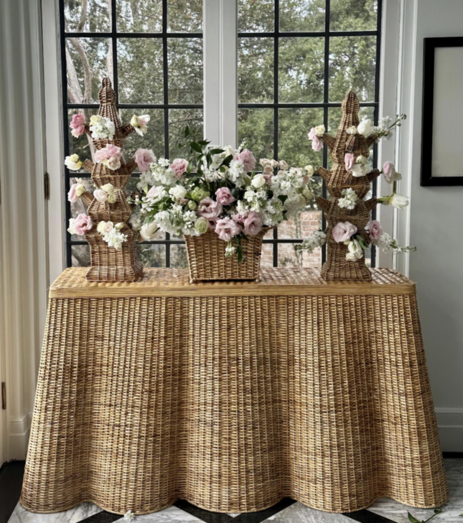 Just love the wicker console scalloped console table, it is so unique , can be placed in so many different rooms and still look beautiful