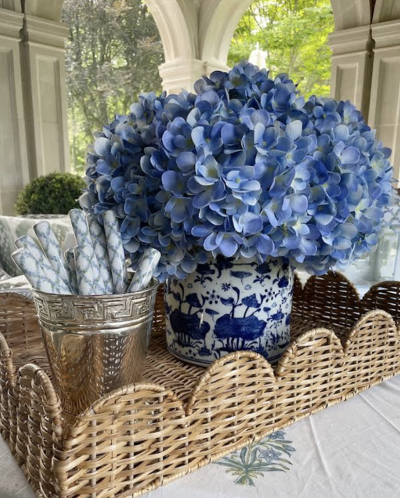 Love the scalloped wicker tray. I think anything that you set inside it, instantly gets elevated and seem so special. I would love to see that loaded with goodies for happy hour.