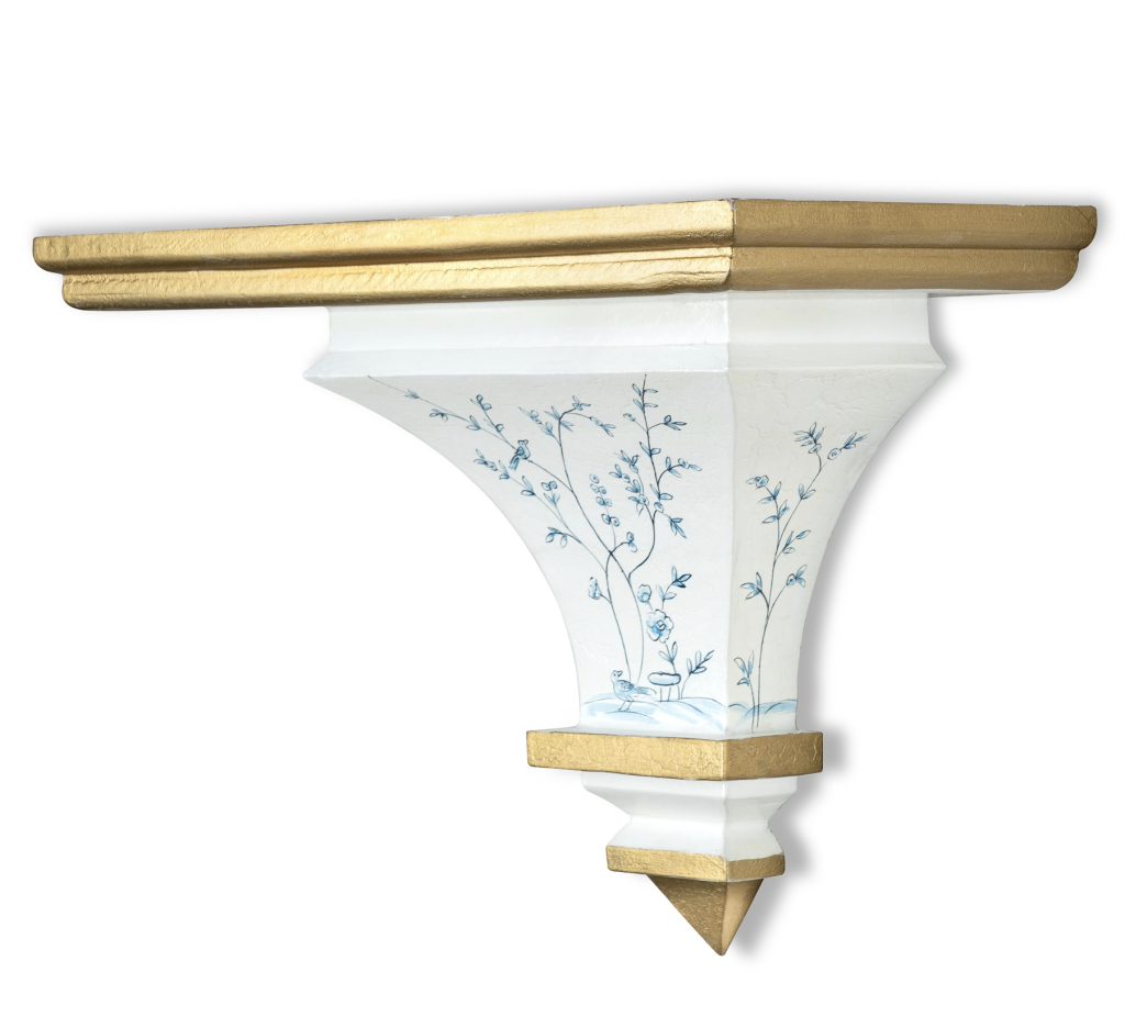 ITEM 12 And last but certainly not least! Overjoyed that these most beautiful hand painted chinoiserie solid wood brackets are coming home! These are beyond beautiful and can add so much to any space. Highly decorative and beautiful hand painted trimmed in gold. Offered in three color ways.