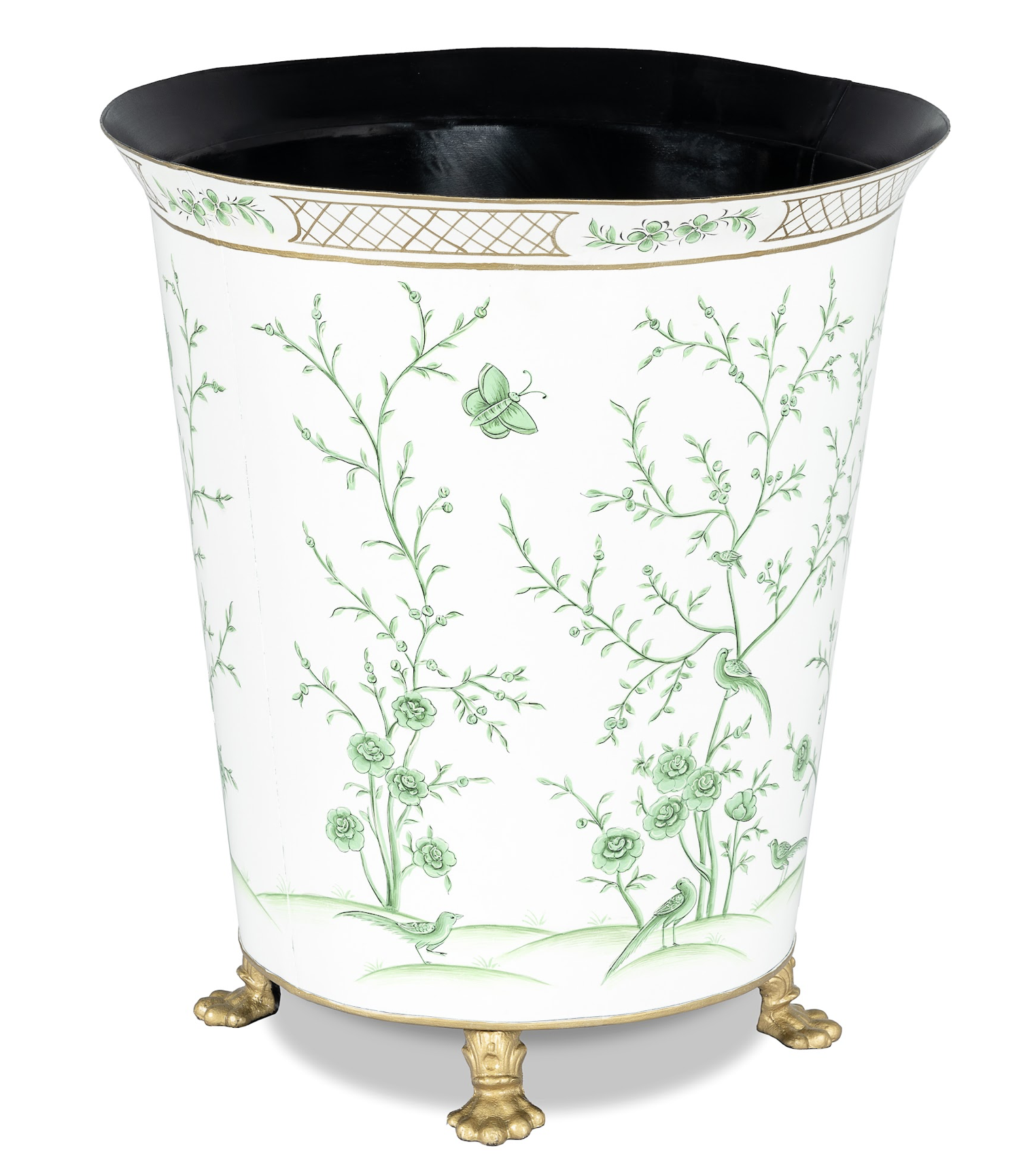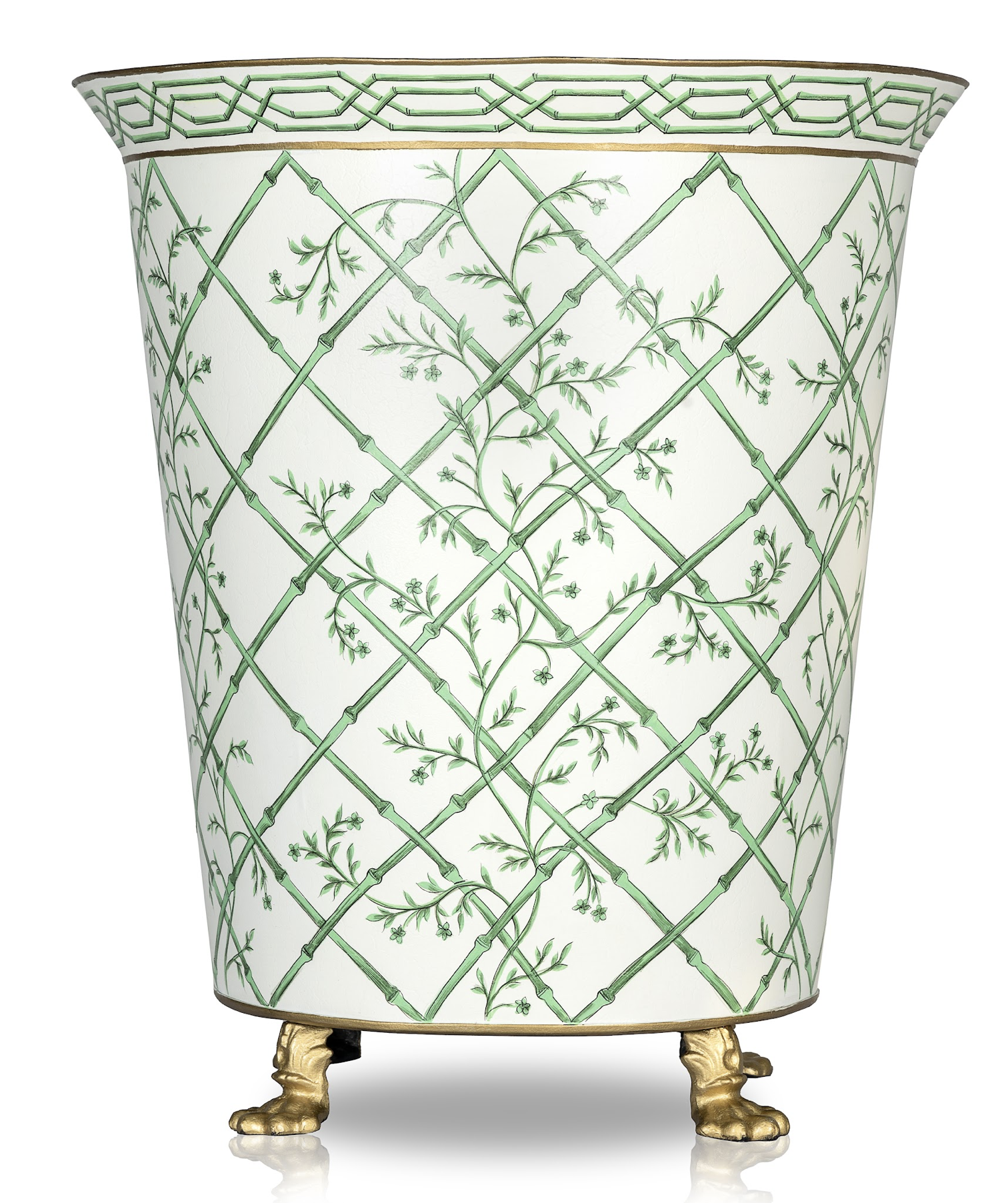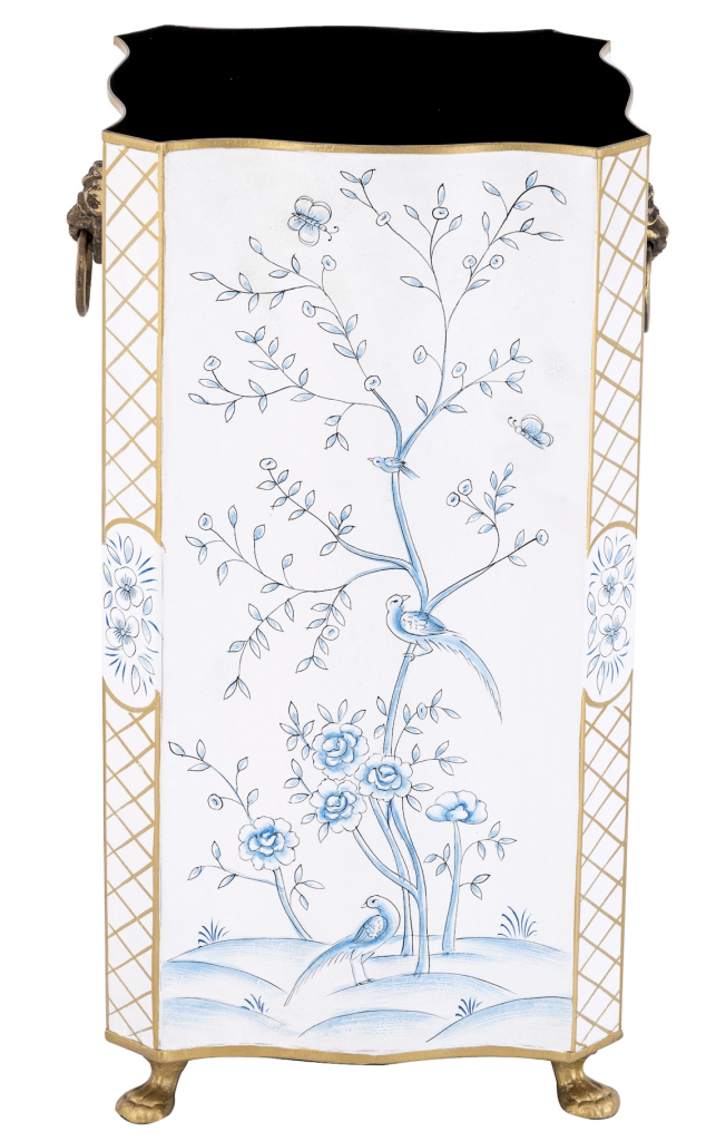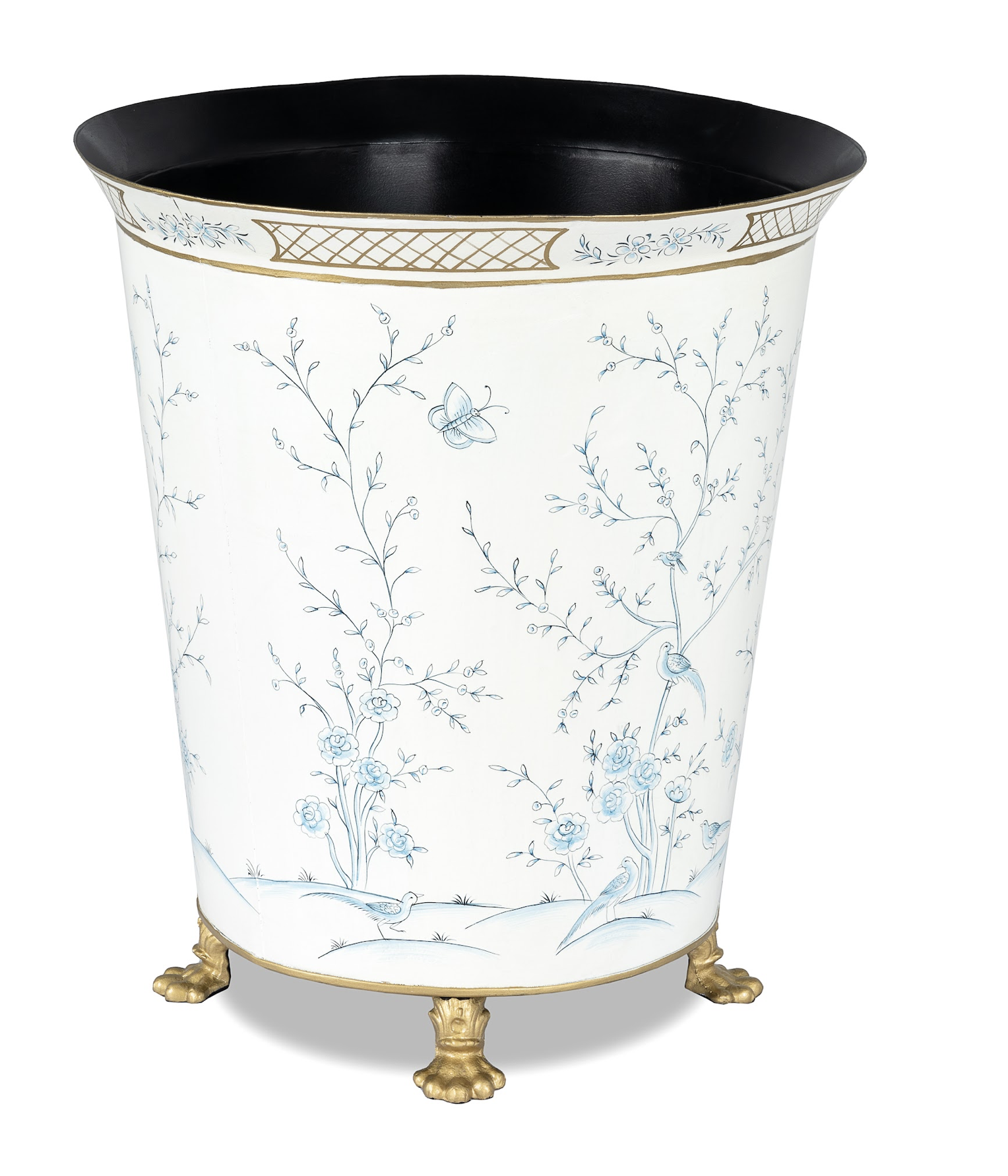 ITEM 1 To me the most exquisite floor planters I have ever seen are coming back!! I own two and they are just beyond gorgeous and so so elegant. Offered in two styles and 2 colors. These look incredible with a big palm or a large flowering tree. Really exquisite, handprinted and they rest on four gold “feet”. Something like this with the only other company makes them would be well over $1000!