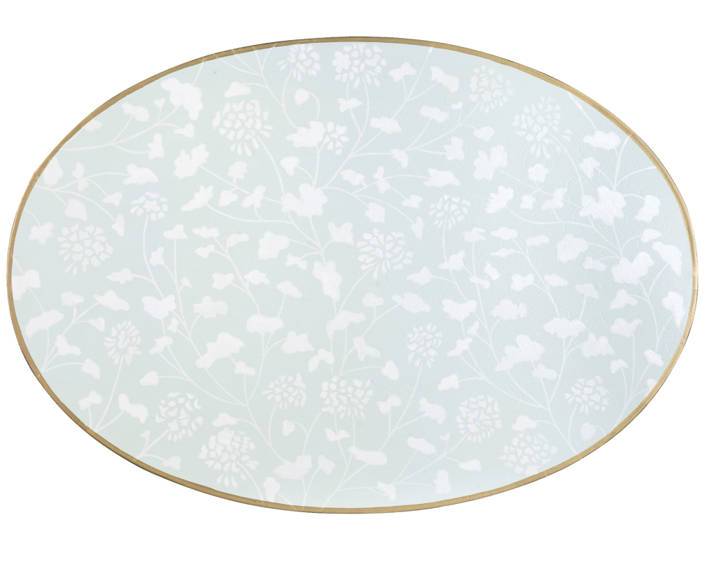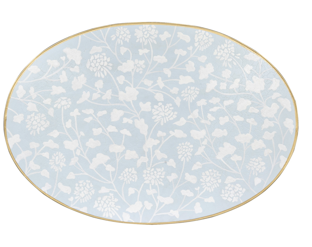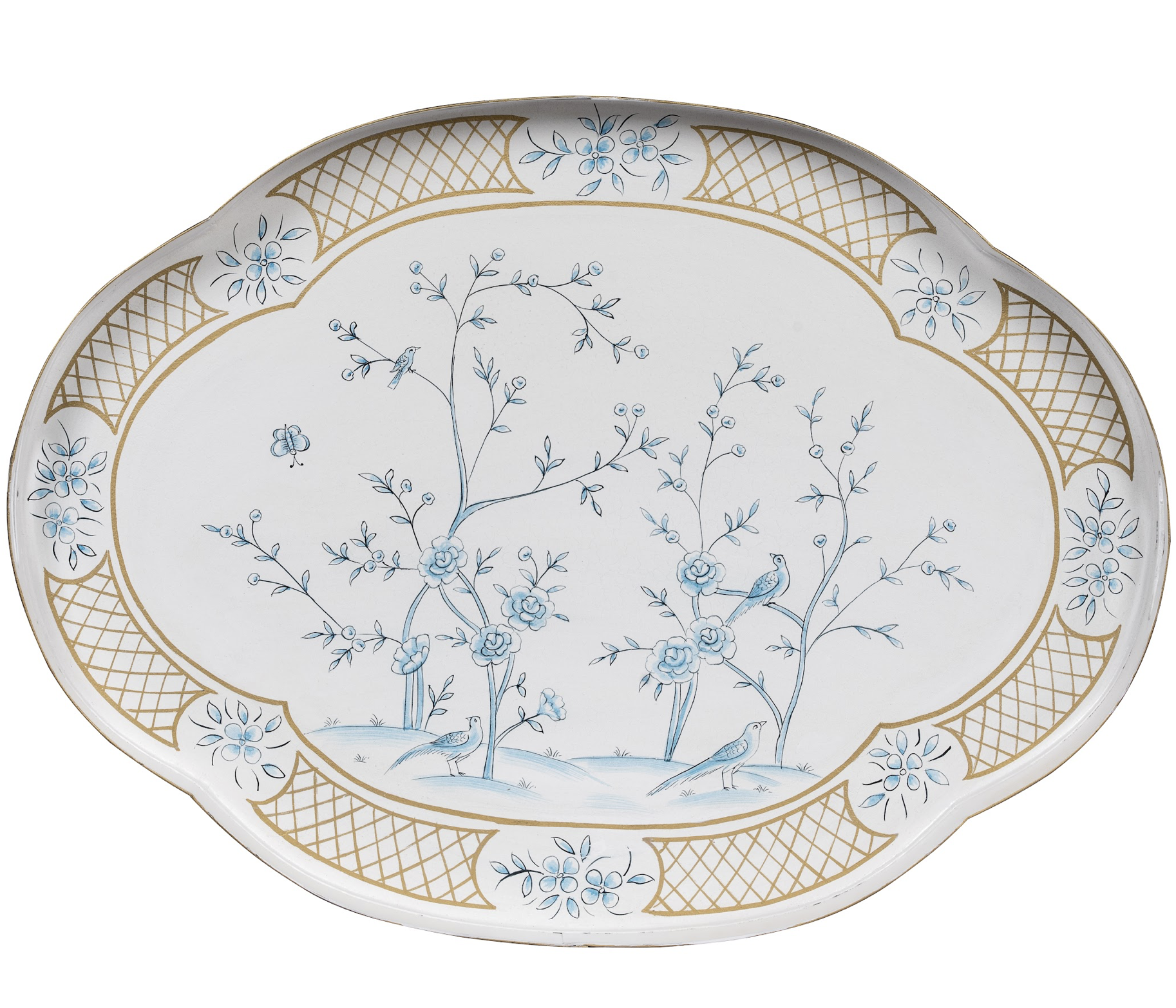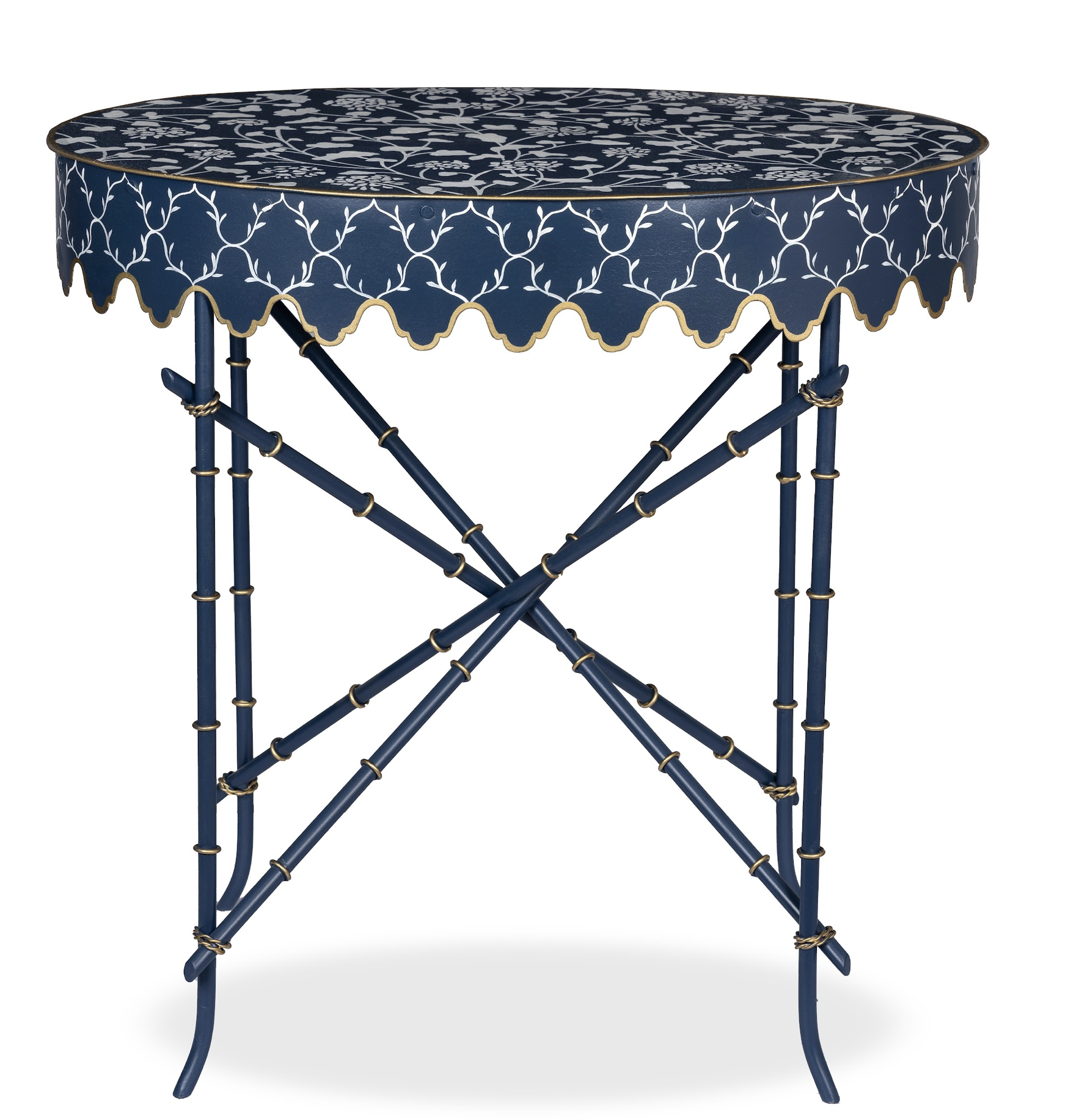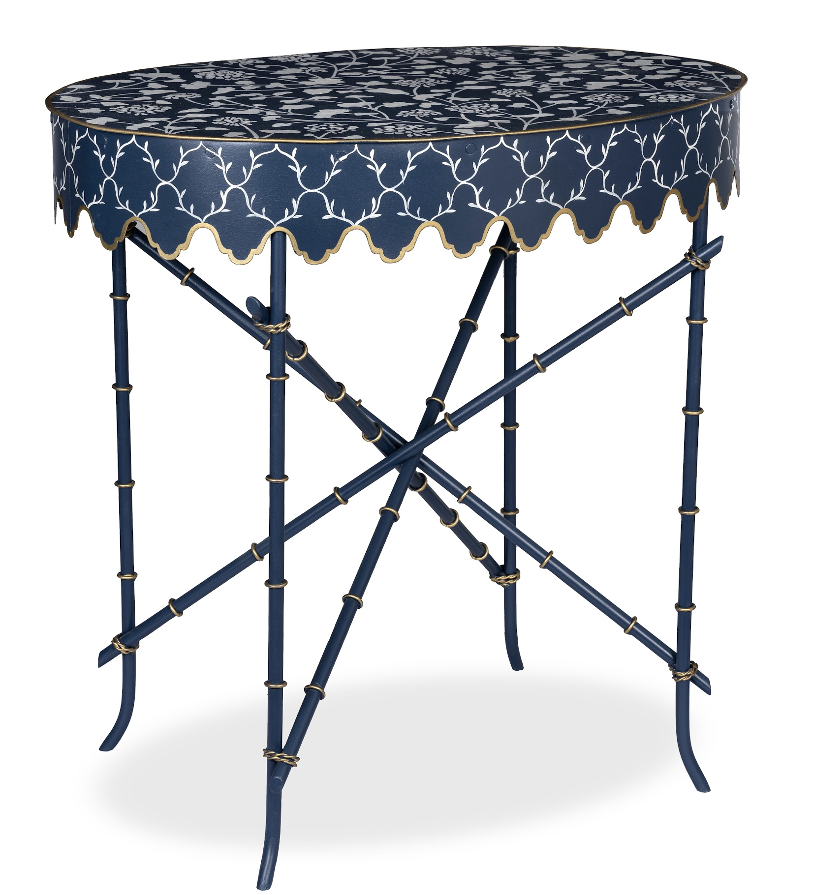 ITEM 6 Did someone say tray tables! These incredible scalloped trays tables are amazing and so beautiful. Love the floral/trellis design with the fabulous scalloped edges pipe in gold. We love them so much, we offer them in four amazing colors! These are great to use as a side table, end table, when you need an extra table to pull up, and light enough to move around. Super versatile.