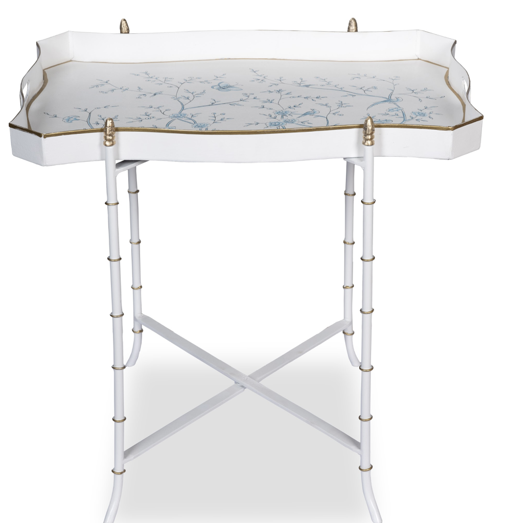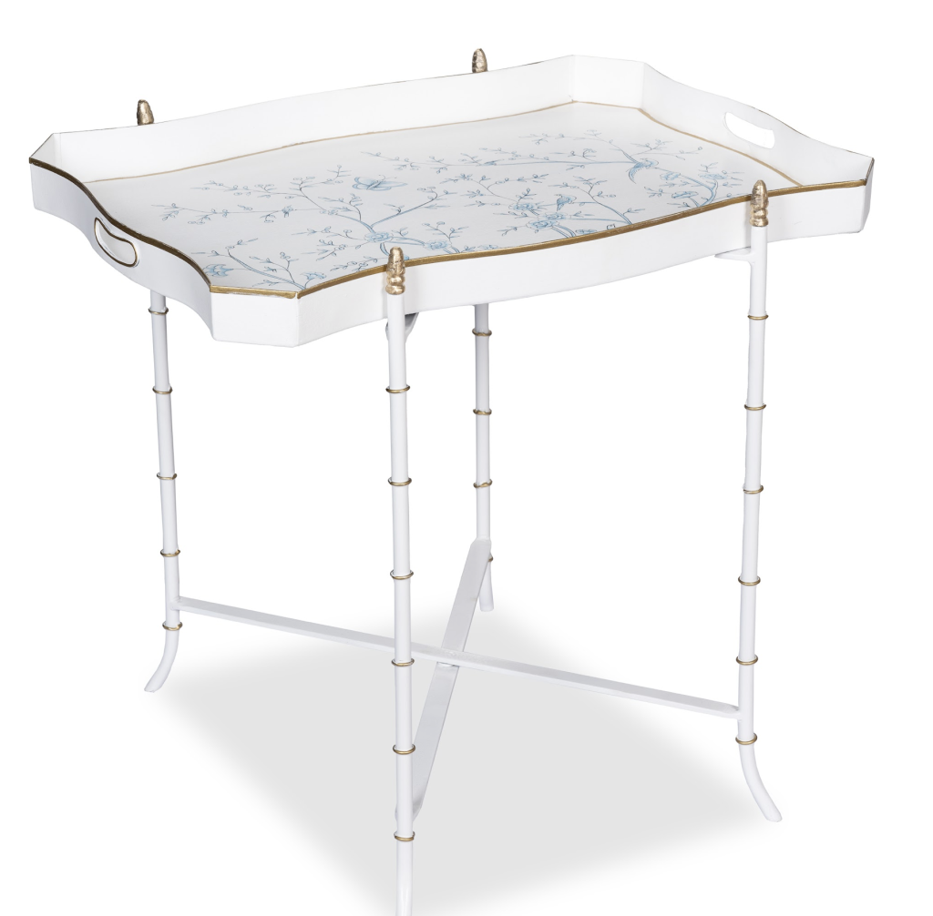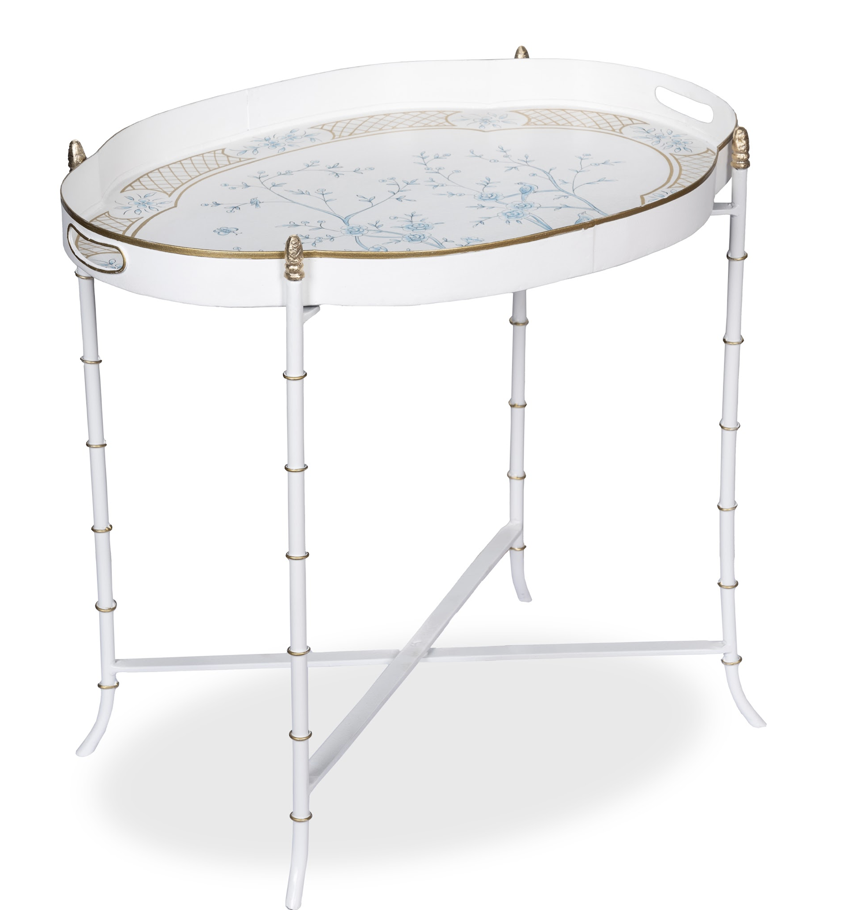 ITEM 2 We are getting back in stock.some of our best selling tray tables…finally! These are incredibly elegant, very practical as they can be moved room to room, used as a side table or end table, be taken outdoors and the tray comes off if you want to use it for serving! If you. know the prices of handpainted tray tables like these, you will instantly recognize the deal these are.