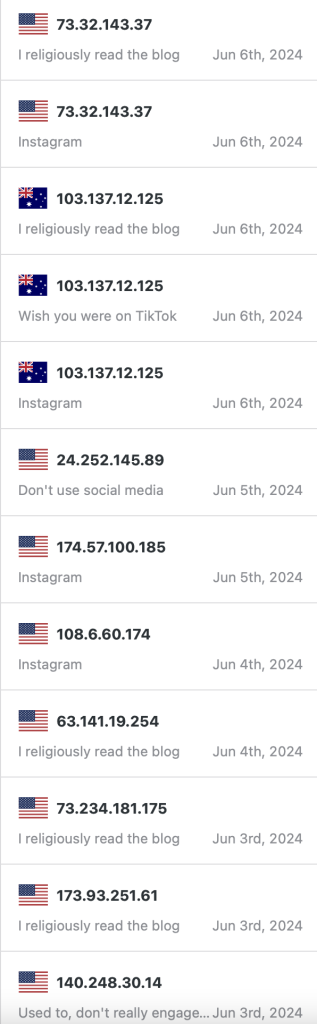 I do not have a designed marketing “team” it’s just me, myself and I but someone is going to be helping with that soon. As an example, for most companies when they have an Instagram post featuring their products, you can shop from the instagram page, we don’t have that and that’s a huge missed opportunity. One more thing we are working on!