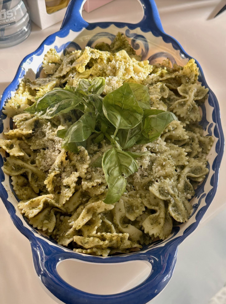 Pesto for the win. Was invited to friends house for a BBQ, so I made the addition. I am staying off carbs right now but did a small taste test and it was so good! Pesto is really quite easy and so flavorful. I freeze it when I make it and love it for so many things- marinade for chicken, shrimp or steak, and of course its amazing with pasta.