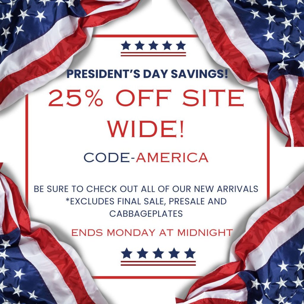 Our big President’s sale started this morning (2 days) 25% off SITE WIDE