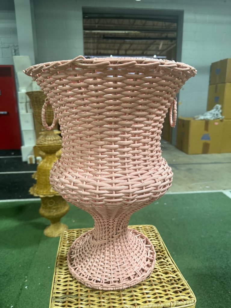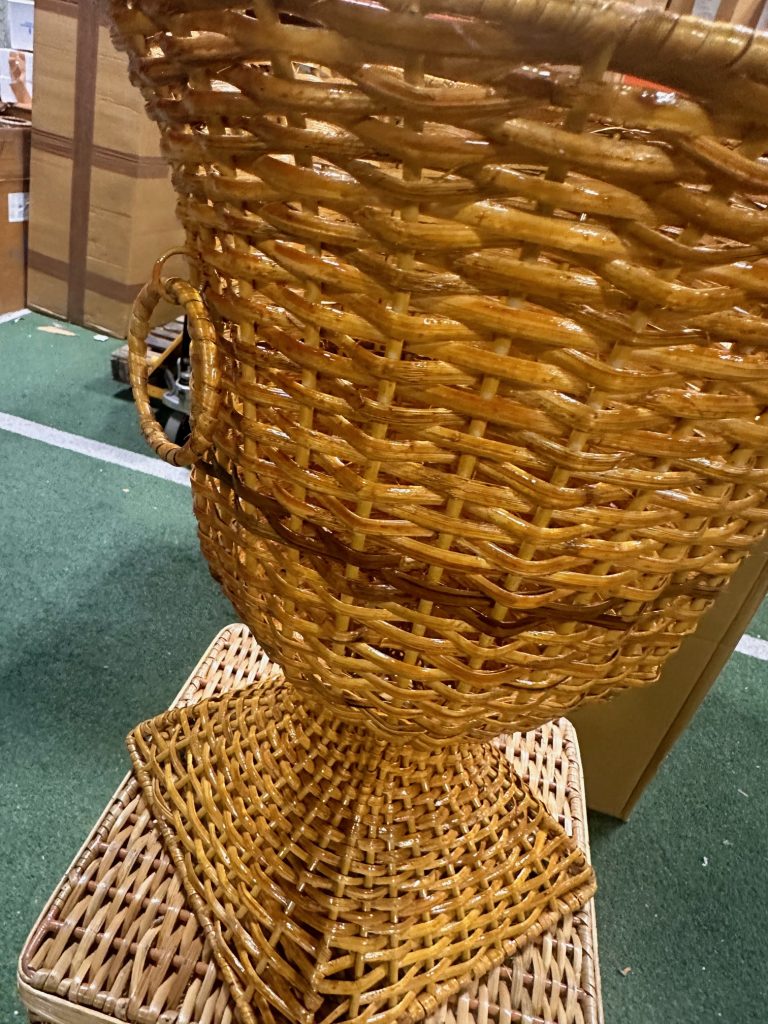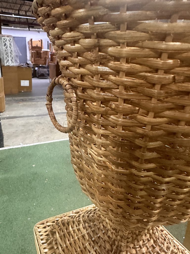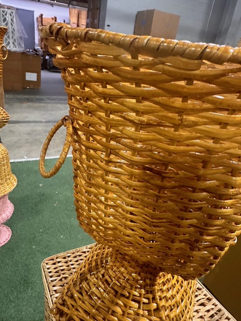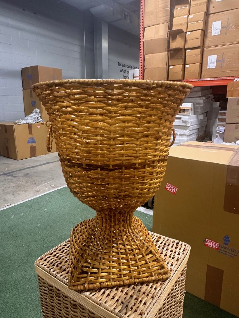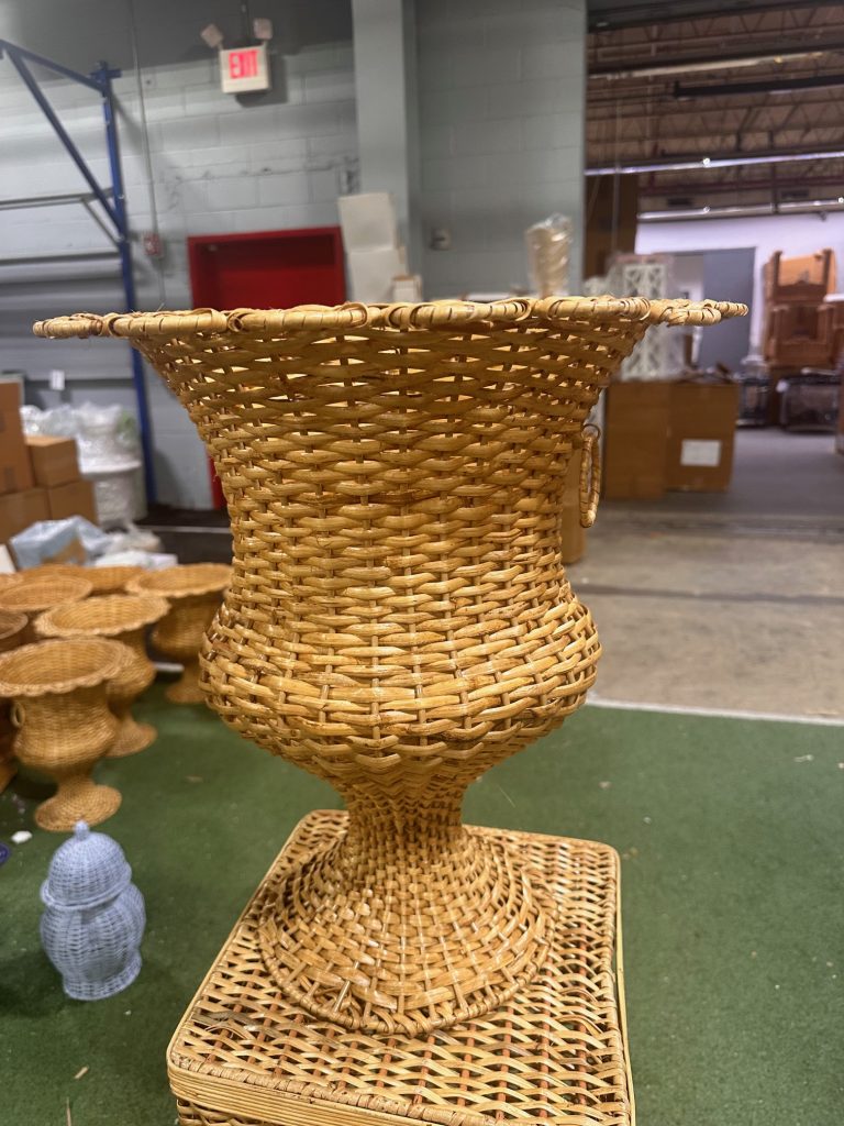 ITEM 12 Talk about an urn with character! Since wicker is a natural material, as you know, variations will occur in coloring. This one has a darker “stripe” going through it. It could certainly has used as is or easily spray painted.