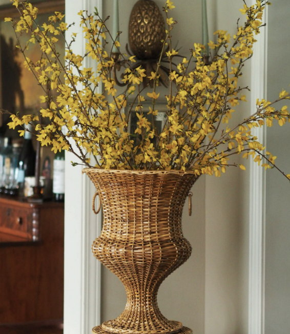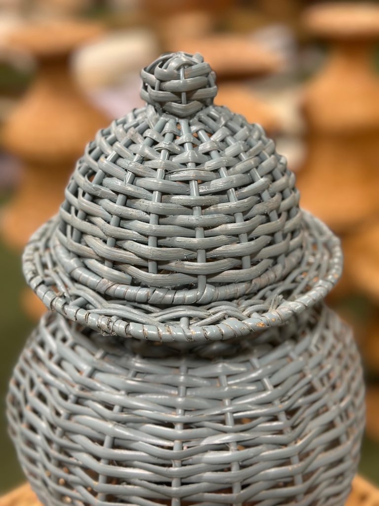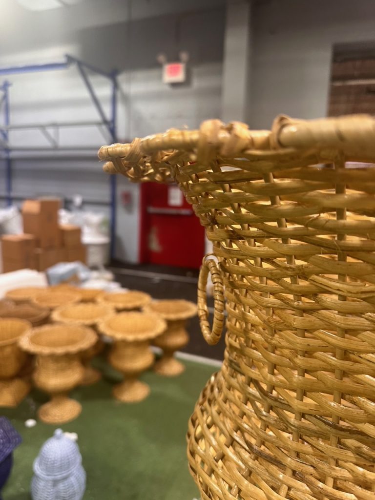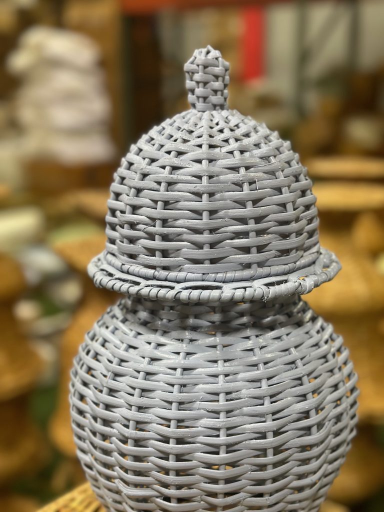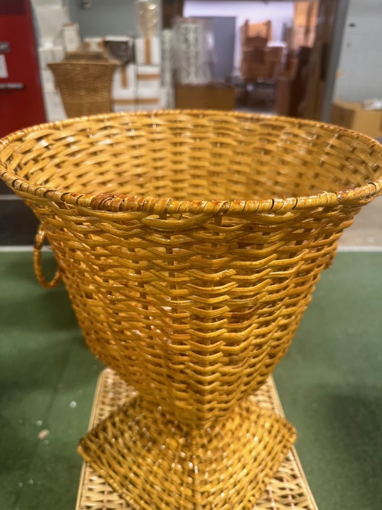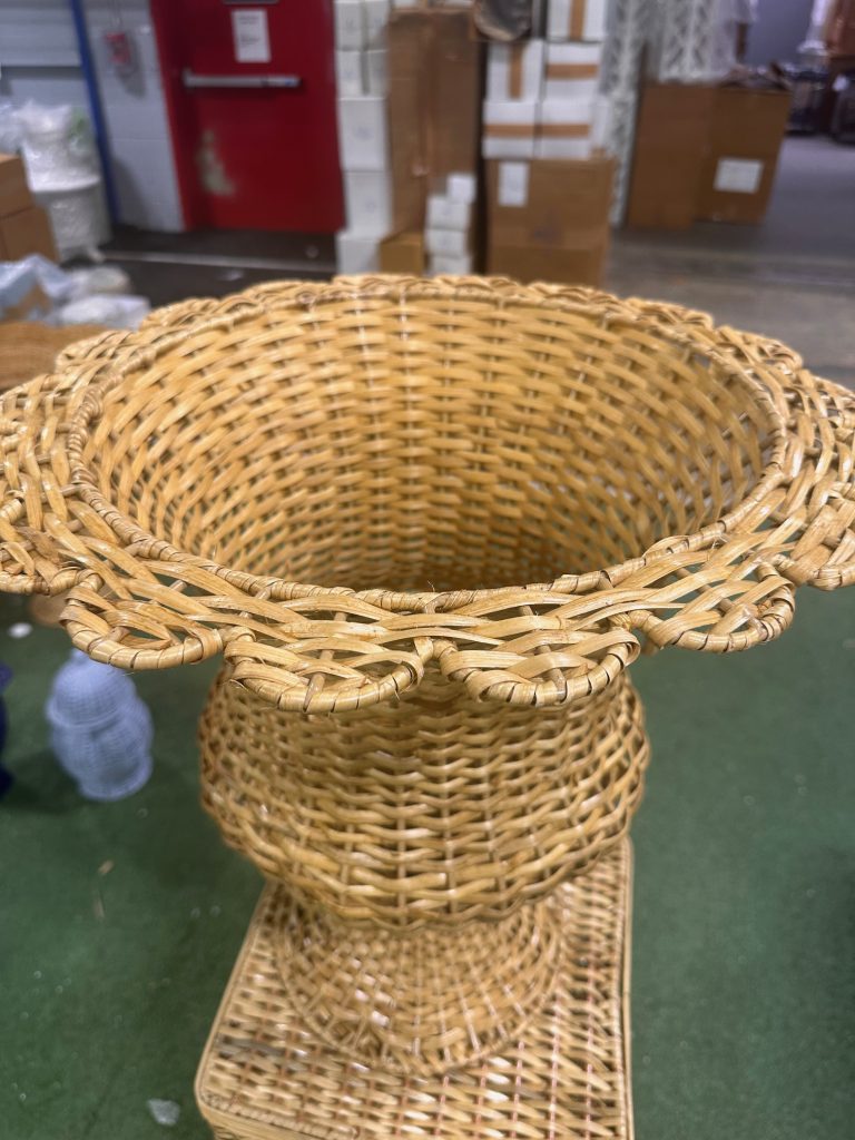 ITEM 12 Talk about an urn with character! Since wicker is a natural material, as you know, variations will occur in coloring. This one has a darker “stripe” going through it. It could certainly has used as is or easily spray painted.