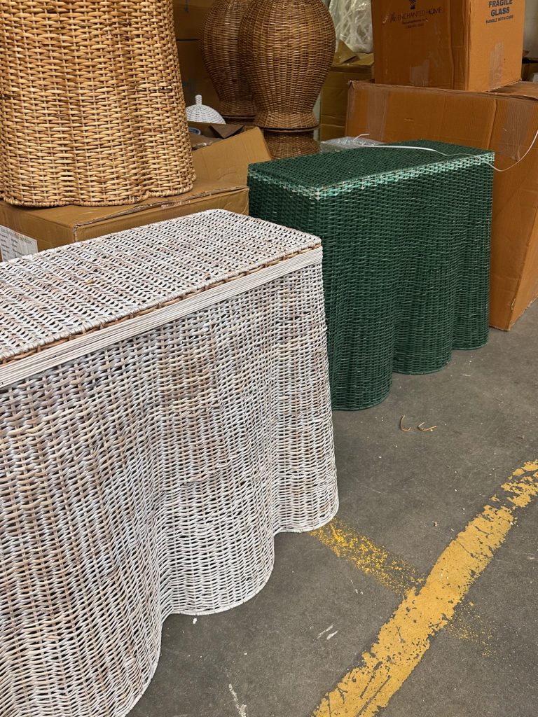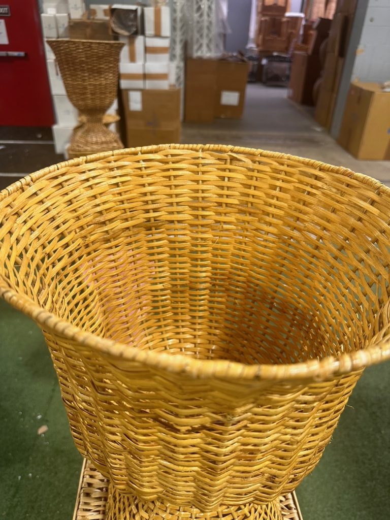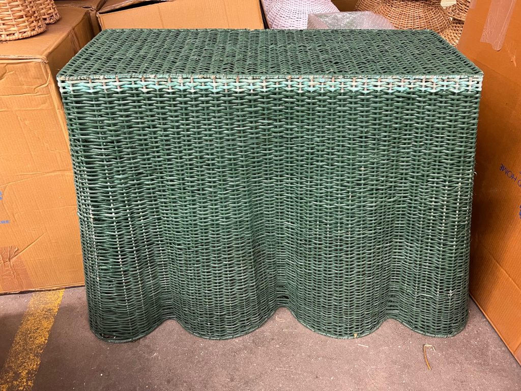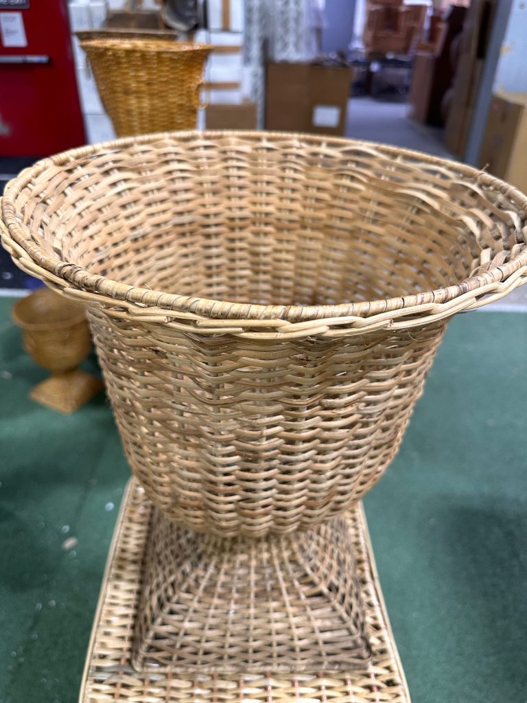 ITEM 12 One of our best selling wicker items are these fabulous scalloped bottom stools/tables that stand 24″ tall. Great as an end table or stool, and they open up (wonderful for storage) They have the slightest flaw, could be part of the wicker banding is loose and requires a little glue. That’s it! These are about 45% off their normal selling price. We have 5 available, these are really fabulous! Great as an end table, storage, hamper, kids toys, etc…..