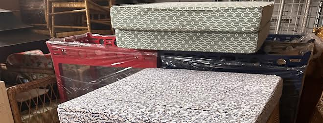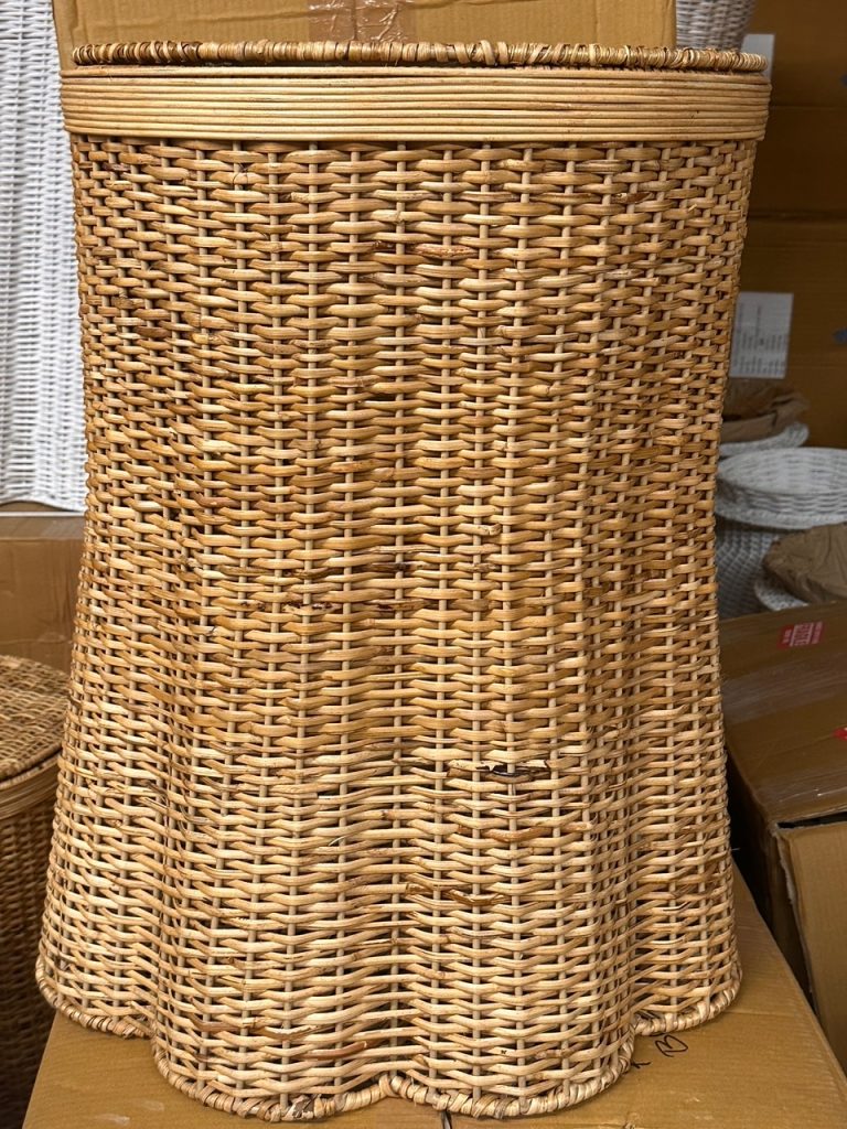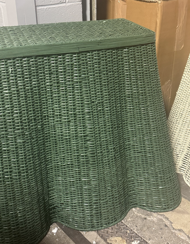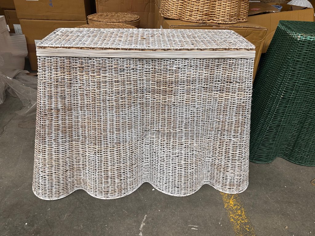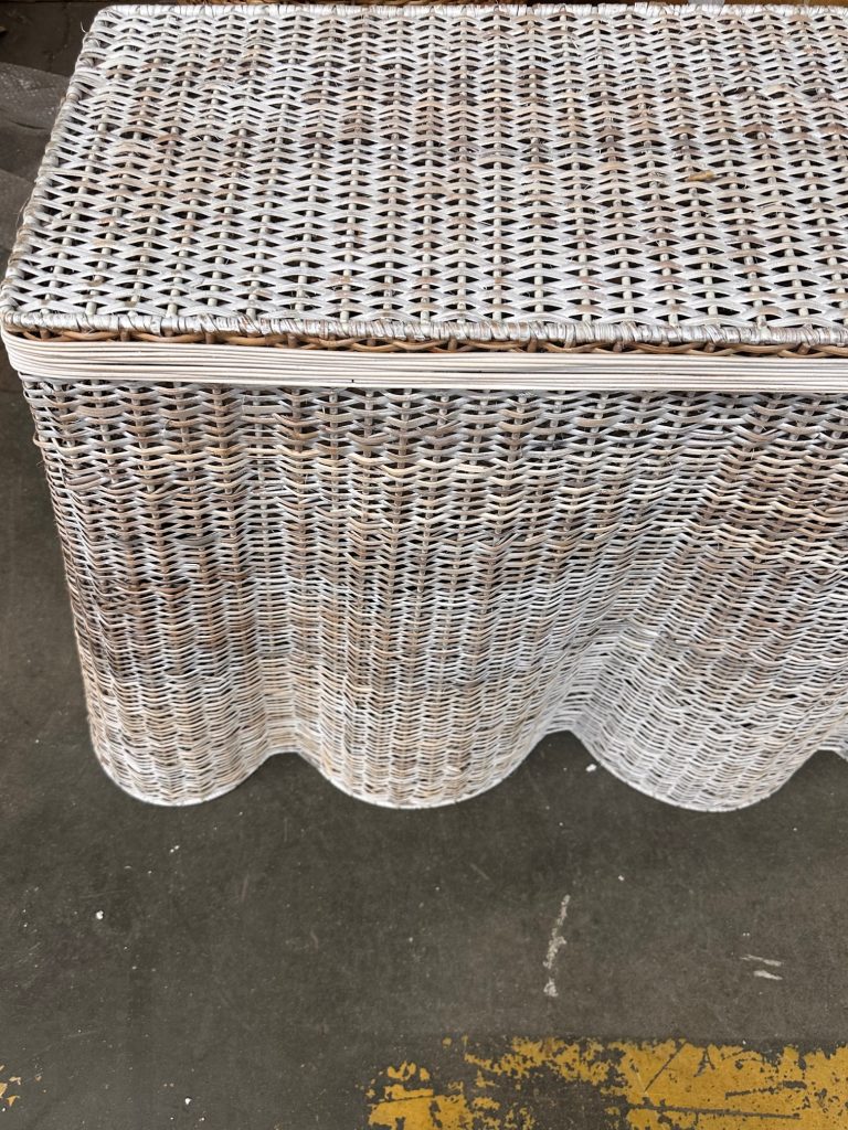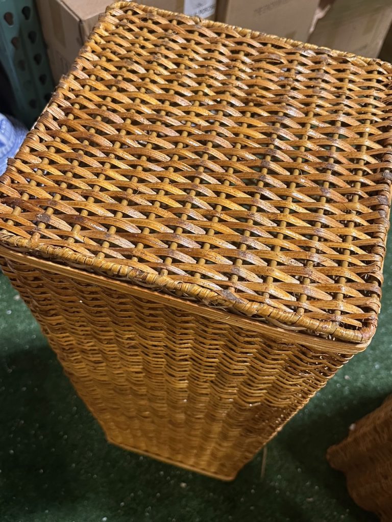 ITEM 12 One of our best selling wicker items are these fabulous scalloped bottom stools/tables that stand 24″ tall. Great as an end table or stool, and they open up (wonderful for storage) They have the slightest flaw, could be part of the wicker banding is loose and requires a little glue. That’s it! These are about 45% off their normal selling price. We have 5 available, these are really fabulous! Great as an end table, storage, hamper, kids toys, etc…..