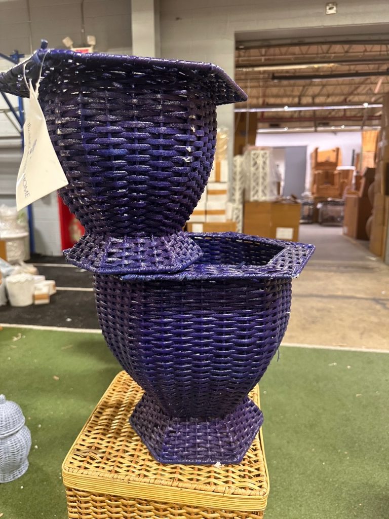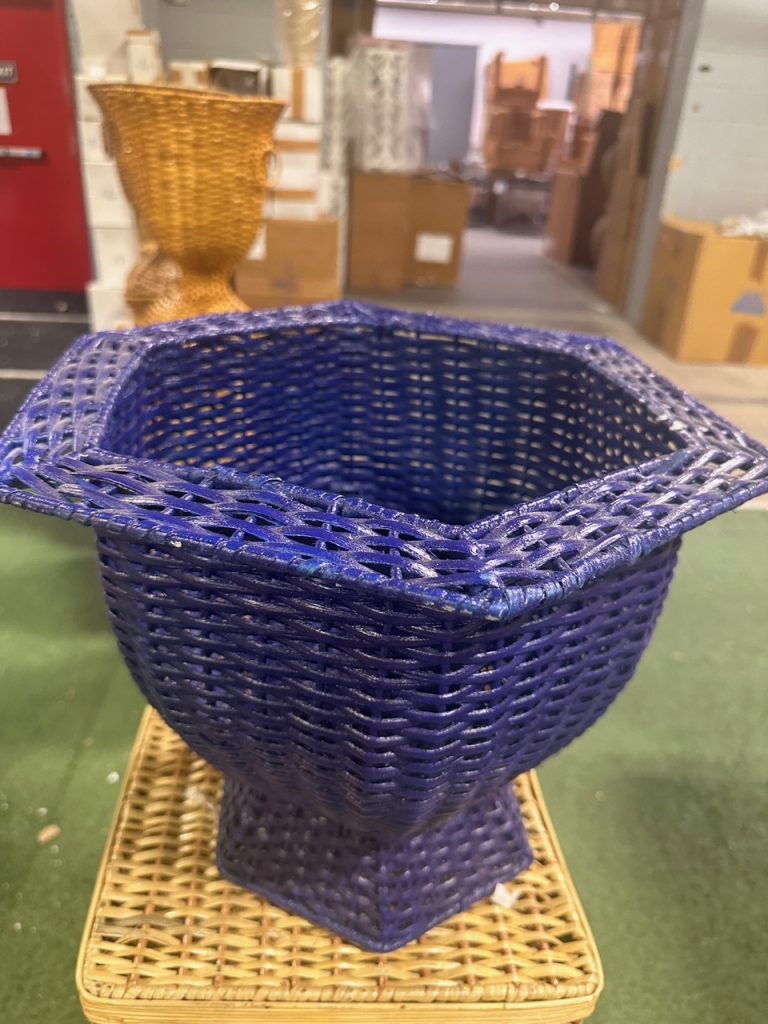ITEM 10 Have one of each of these med and large wicker hexagonal planers, beautiful for fresh greenery, orchids, fresh flowers, a topiary! A beautiful shade of royal/navy blue