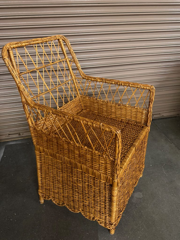 ITEM 17 We have six left of these beautiful wicker dining chairs. Could also make a great desk chair, The cushions do no come with it, but these are in perfect condition, love the scalloped bottom. About half of the original selling price!
