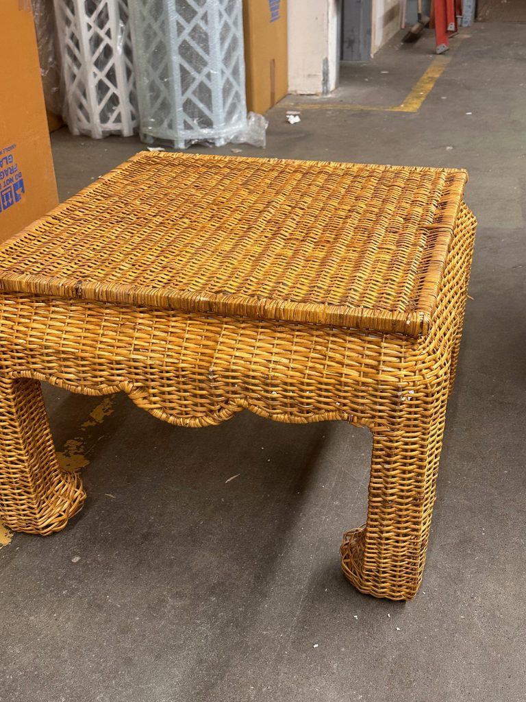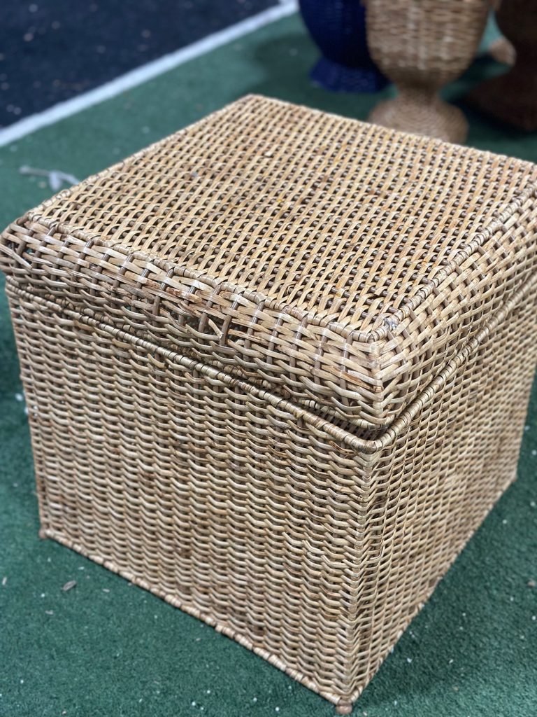 ITEM 6 Two light natural square pedestal. On the right side if you look closely you will see its slightly bent. Super easy to hide and its subtle. Not only does these look beautiful with wicker pieces, but equally pretty with a ginger jar, vase or piece of sculpture too!