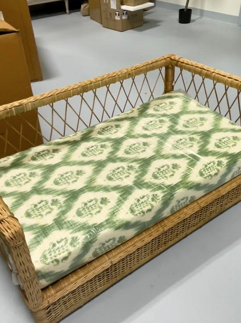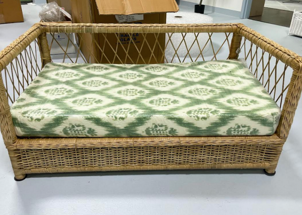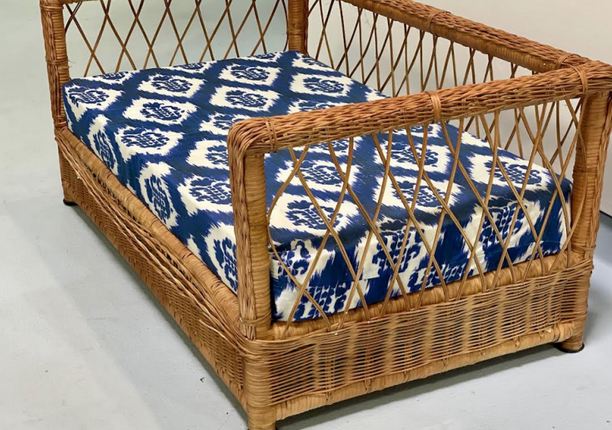 ITEM 21 Could not believe we found two of these very large wicker dog beds with ikat cushion! A big surprise! These are ideal for med to large dogs.Such a stylish statement that will fit beautifully into any room! A very substantial bed that could almost fit a small child:) Absolutely spectacular looking, makes me wish I had a dog!