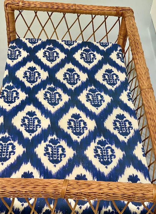 Super stylish with a pretty blue/white ikat cushion. Limited number of these available. Shipping is billed at time of shipment as these will go frieght.