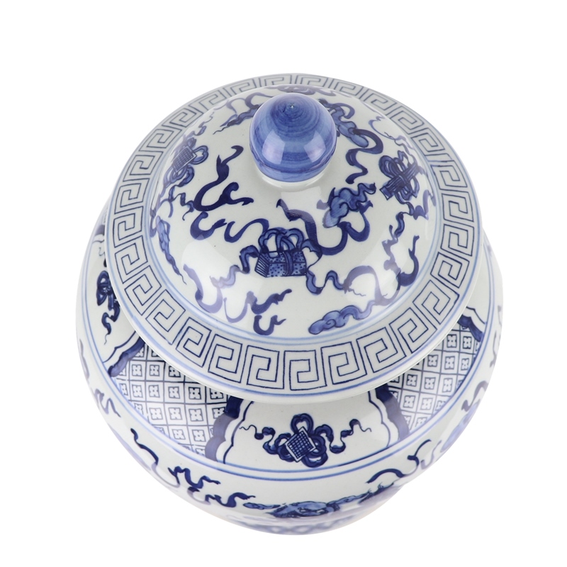 ITEM 19 My personal favorite flat top is this beautiful cherry blossom jar. I like that there is a lot of :white space” so it works beautifully with other collections of blue and white.