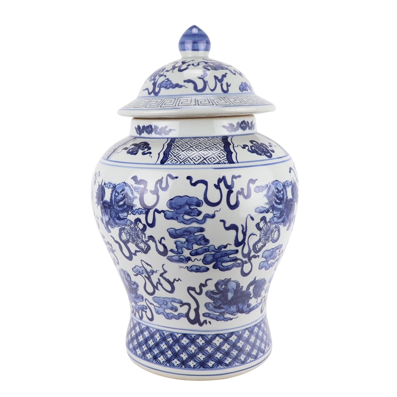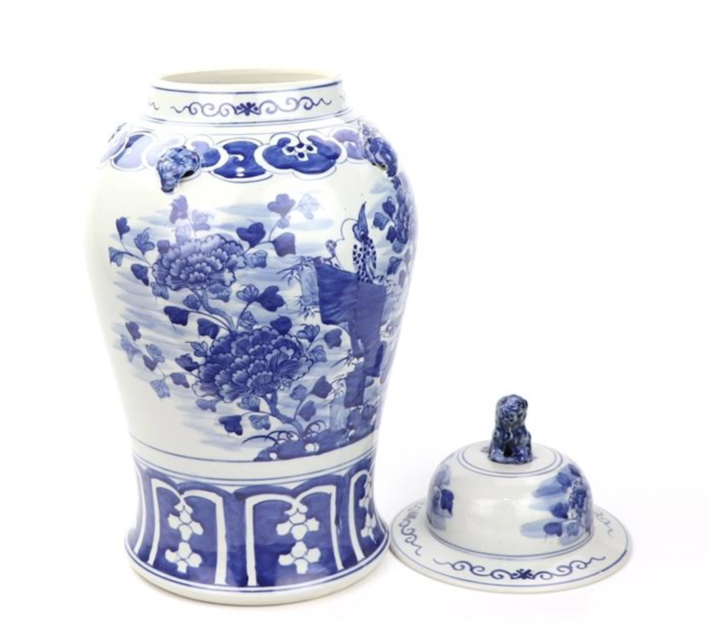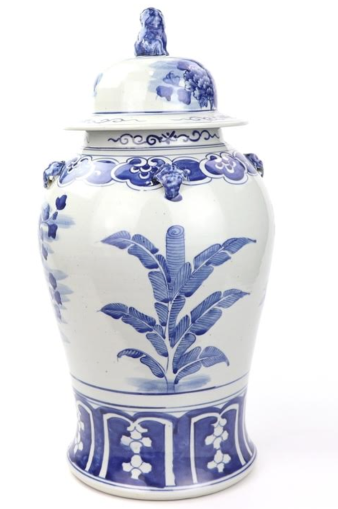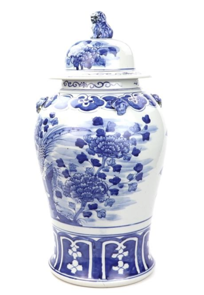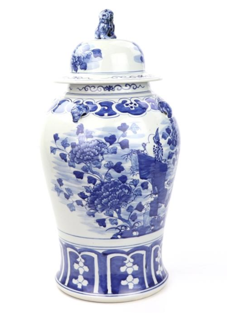 ITEM 16 Definitely one of our best selling items across the board is this incredible antiqued bird ginger jar with raised doe tailing and a charming foo dog lid. Ginger jars don’t get any prettier!
