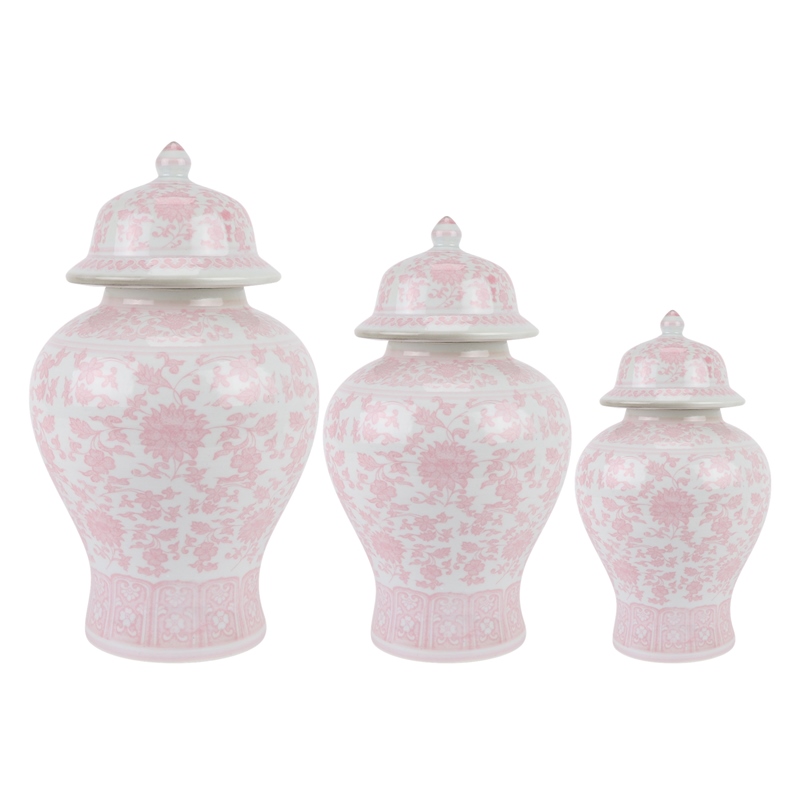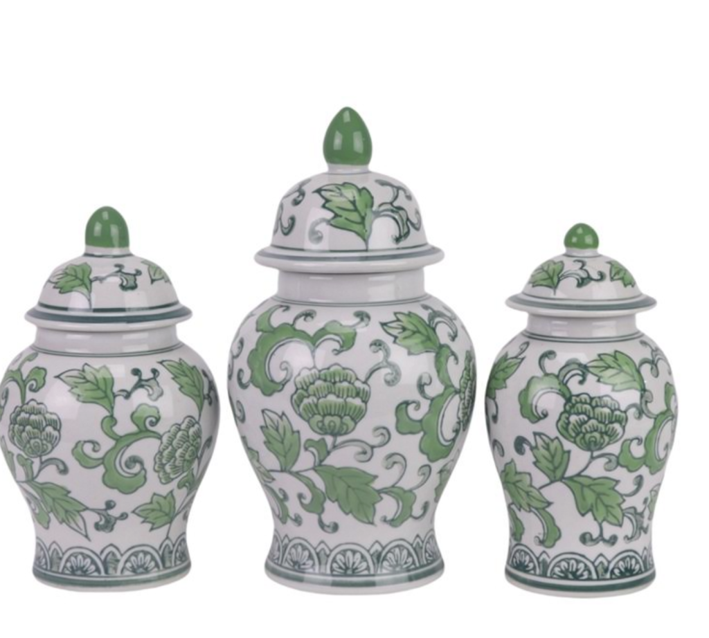 ITEM 14 Everyone’s favorite trio of pink/white porcelain ginger jars is coming back in stock. Whether you purchases solo or the trio,these beauties will add a beautiful touch whenever they are used.