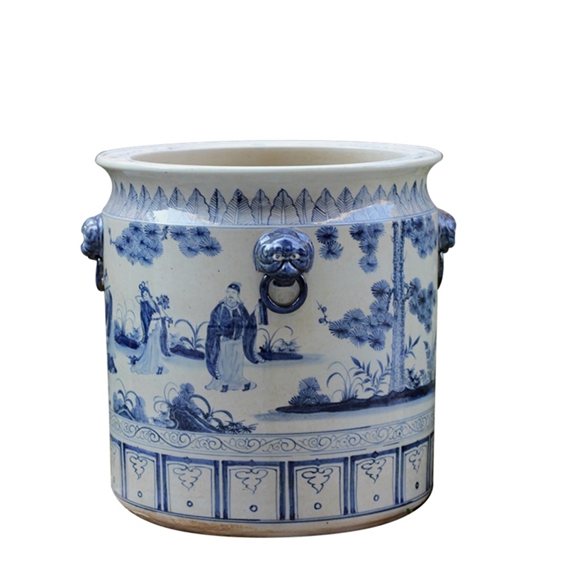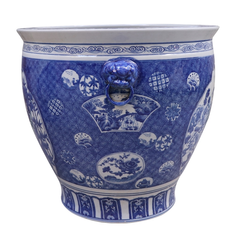 ITEM 20 Since its fishbowl season….this beauty is coming in at te perfect time. I adore this landscape design, beautifully hand painted on entire body of jar. It features pretty lion head ring detailing.  Perfect size for a large topiary, big boxwood or large flowering plant. Great indoors or out.