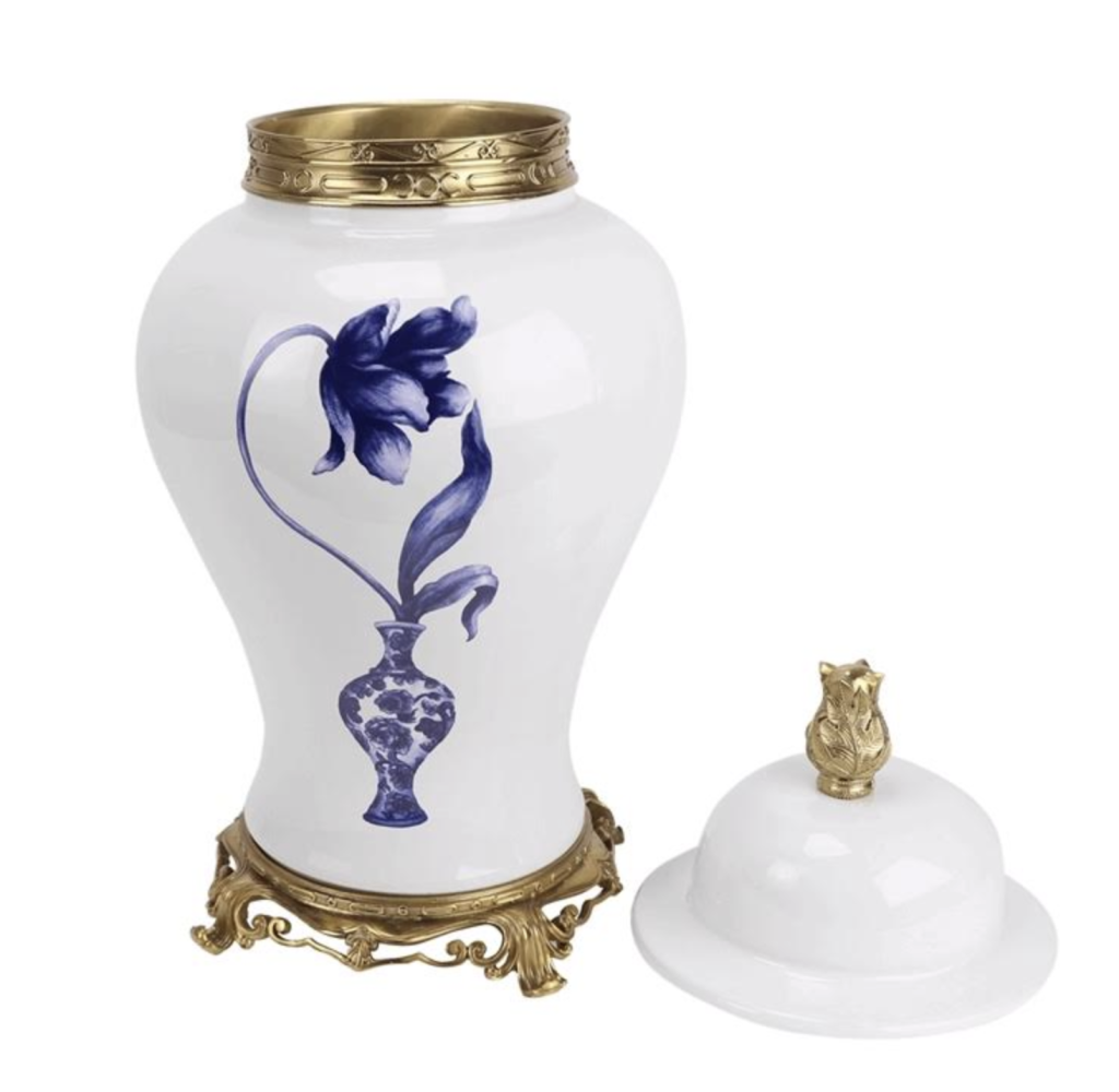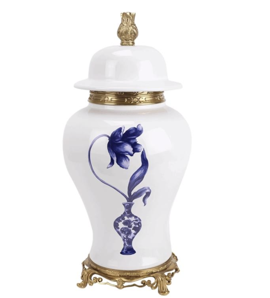 ITEM 7 Limited numbers of our incredible Blue Tulip porcelain and ormolu jar in collaboration with Carolyne Roehm is coming back. Definitely one of my personal favorites, so incredible elegant.
