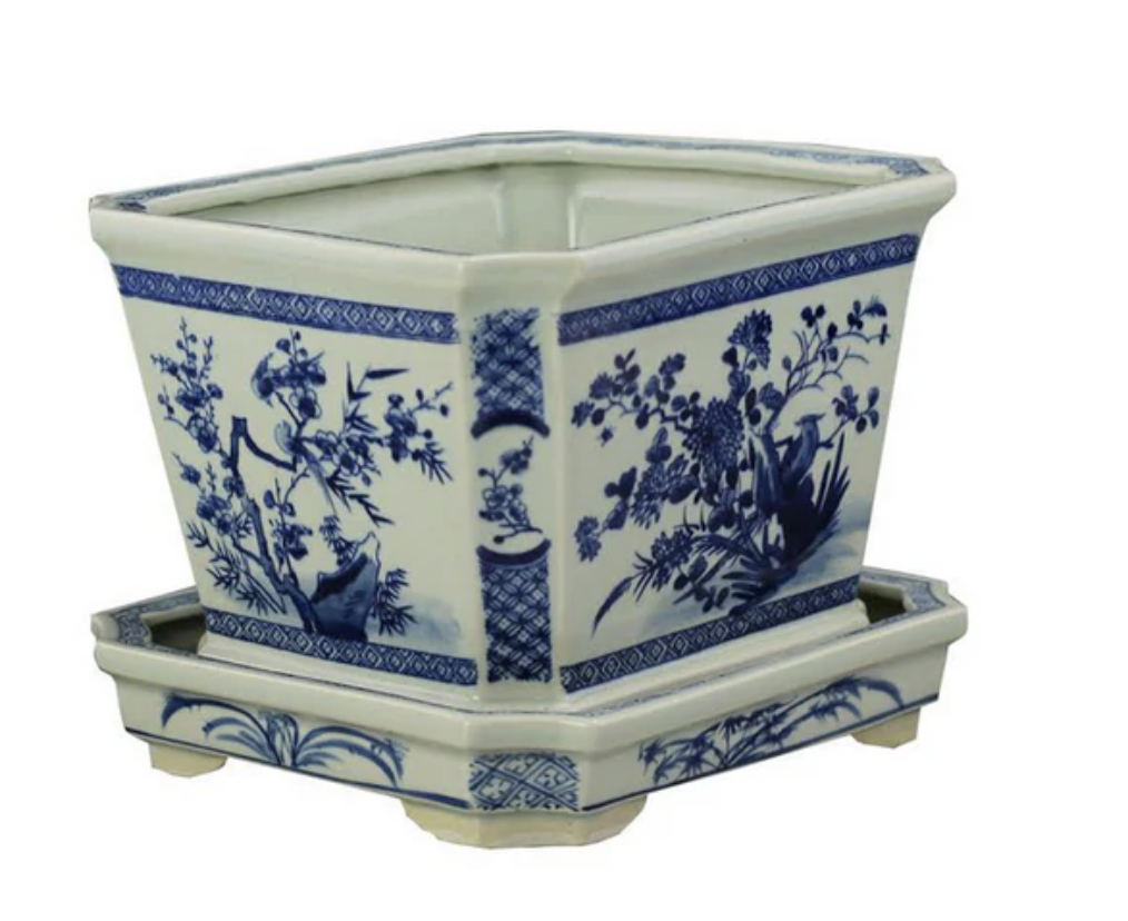 ITEM 6 This fabulous hexagonal planter is the prefect size for orchids ferns, boxwood balls fresh flowers. I love this piece and have a few of them. Its the kind of planter you can use anywhere and that includes outside!