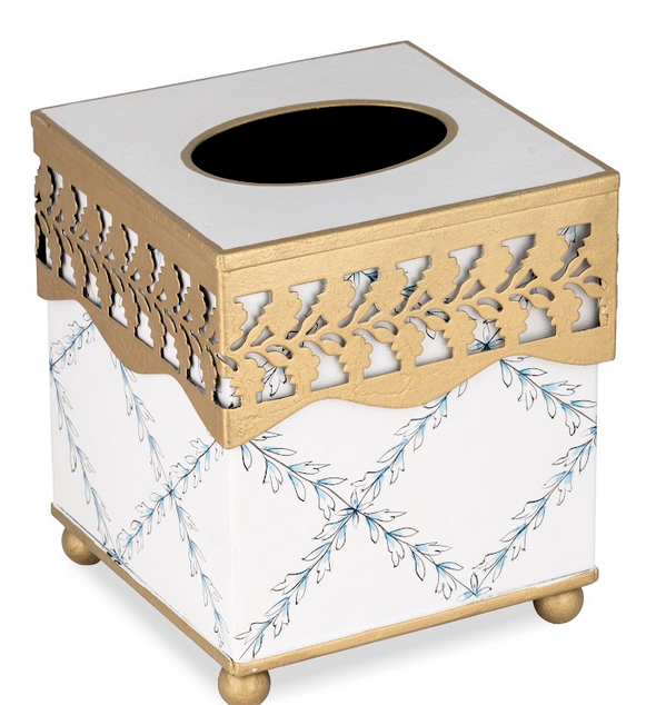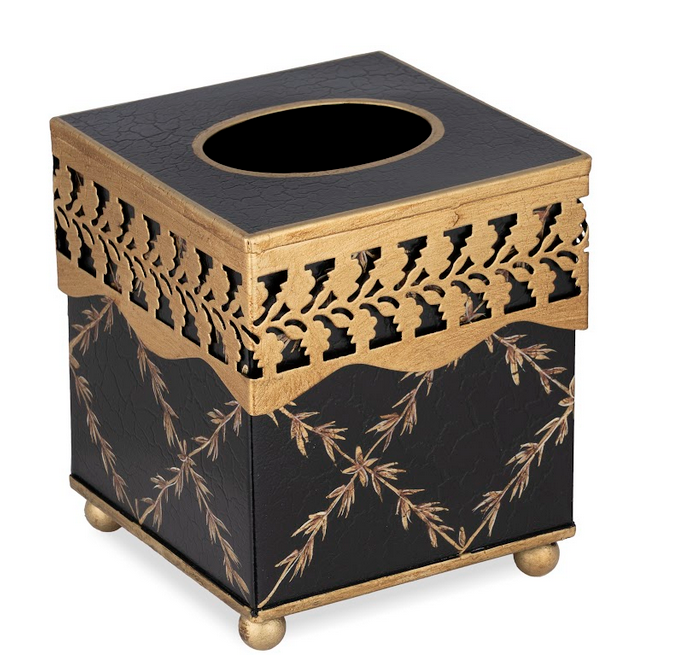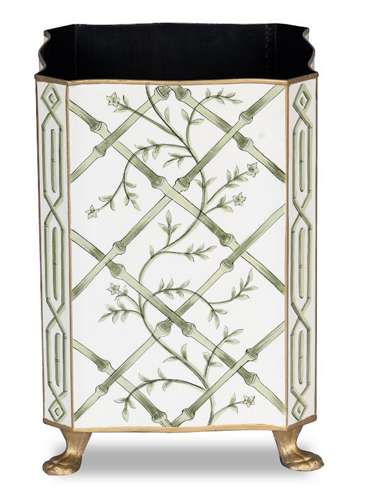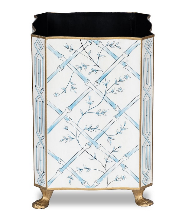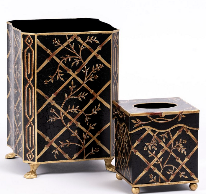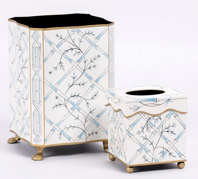 ITEM 6 When we introduce this style wastepaper basket and tissues last y4ear, it was an immediate hit. Always one of the first to sell out with good reason. The elegant flora/bamboo design is so rimless and classically beautiful Offered now in four colorways!